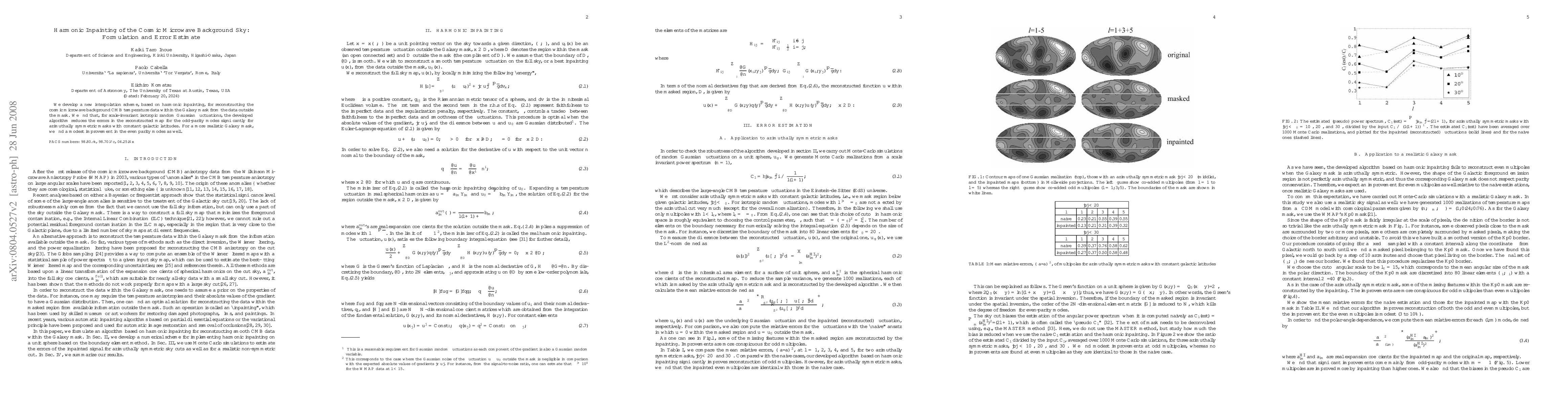 Researchers develop a new method to fill gaps in cosmic microwave background data using harmonic inpainting, showing significant improvements for odd-parity modes with certain Galaxy masks.
