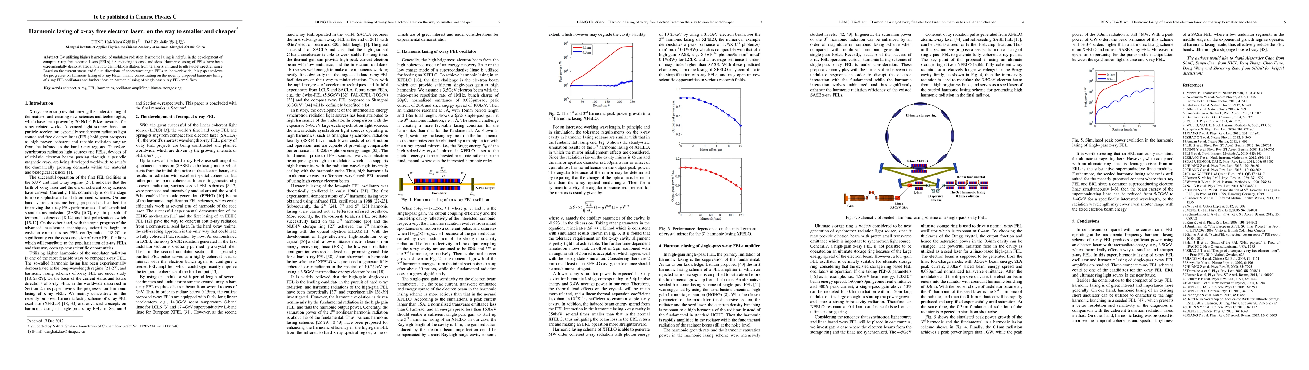 This paper reviews advancements in harmonic lasing for x-ray free electron lasers (FELs), focusing on the potential for smaller and more cost-effective FELs through higher harmonics of undulator radiation. It discusses experimental demonstrations and future prospects for harmonic lasing in both oscillators and single-pass amplifiers.