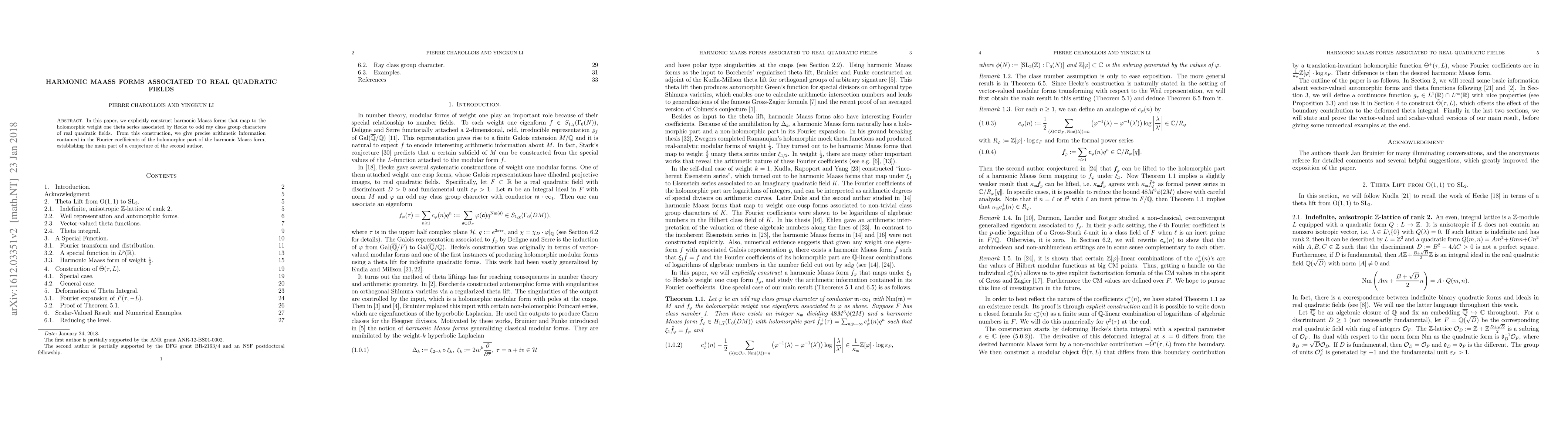 The development of a new method for constructing harmonic Maass forms associated with real quadratic fields, and the calculation of Petersson norms for cusp forms associated with real quadratic fields.
