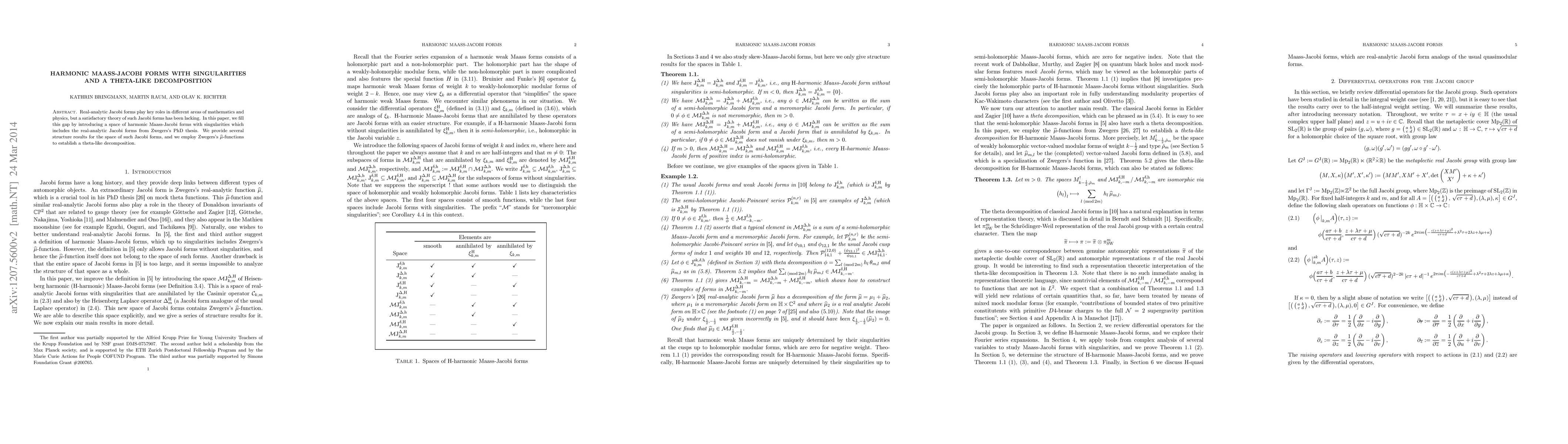 This paper introduces a space of harmonic Maass-Jacobi forms with singularities, including real-analytic Jacobi forms, and provides structure results for this space. It utilizes Zwegers's $\widehat\mu$-functions to establish a theta-like decomposition, filling a gap in the theory of Jacobi forms.
