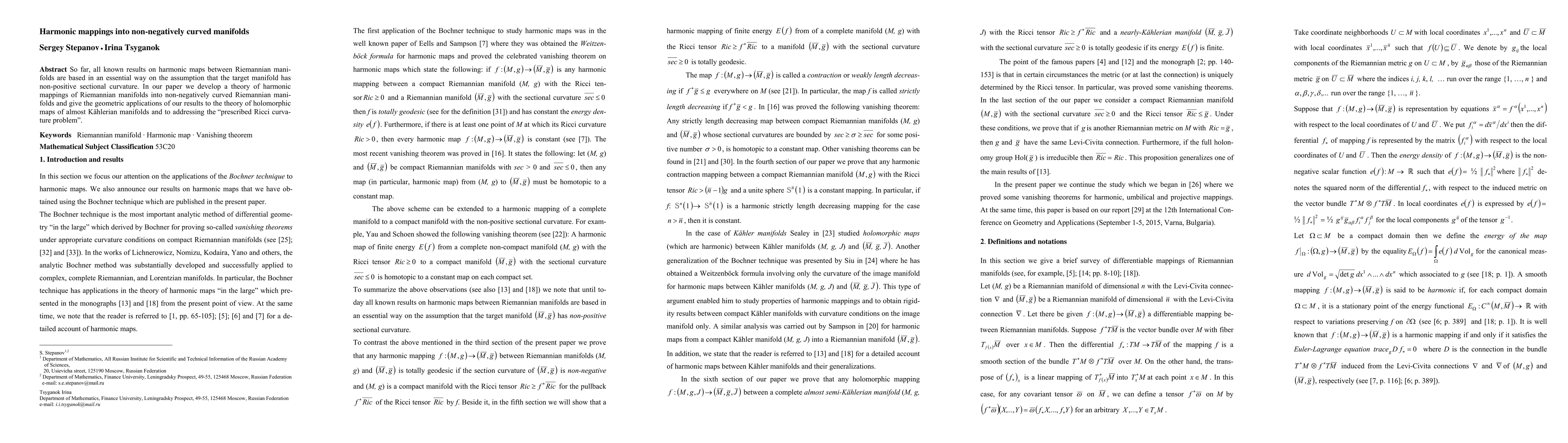 This paper extends the classical theory of harmonic mappings to Riemannian manifolds with nonnegative sectional curvature, proving that any harmonic map from a compact manifold with nonnegative Ricci tensor to a target manifold with nonnegative sectional curvature is totally geodesic under certain conditions. The results also apply to complete manifolds.