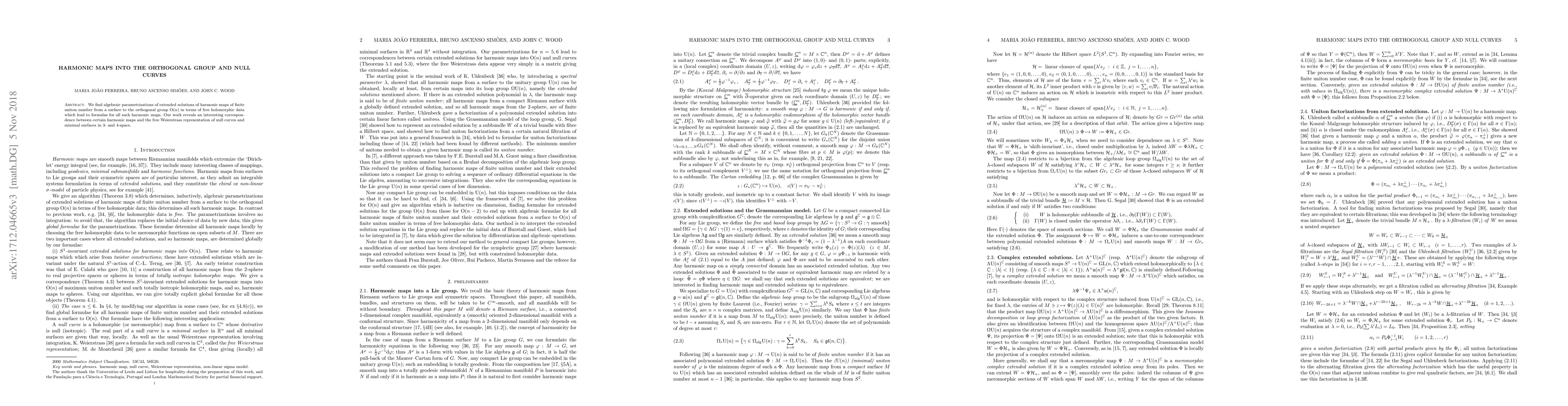 This paper presents algebraic parametrizations for harmonic maps from surfaces to the orthogonal group O(n), deriving formulae from free holomorphic data. It also uncovers a connection between these harmonic maps and the Weierstrass representation of null curves and minimal surfaces in 3- and 4-space.