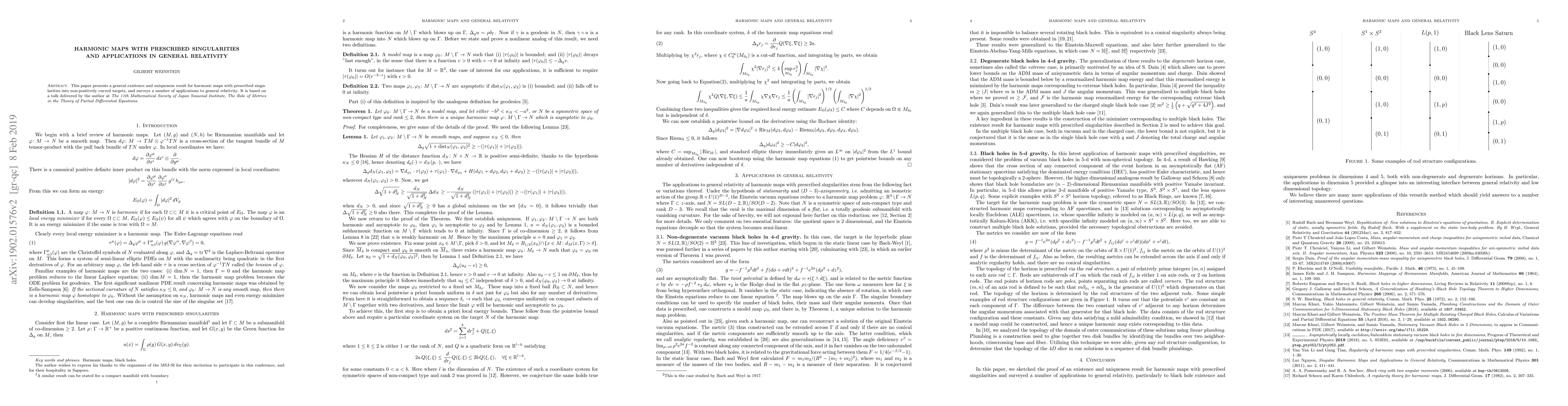 This paper presents a general existence and uniqueness result for harmonic maps with prescribed singularities into non-positively curved targets, and surveys a number of applications to general relativity. It is based on a talk delivered by the author at The 11th Mathematical Society of Japan Seasonal Institute, The Role of Metrics in the Theory of Partial Differential Equations.