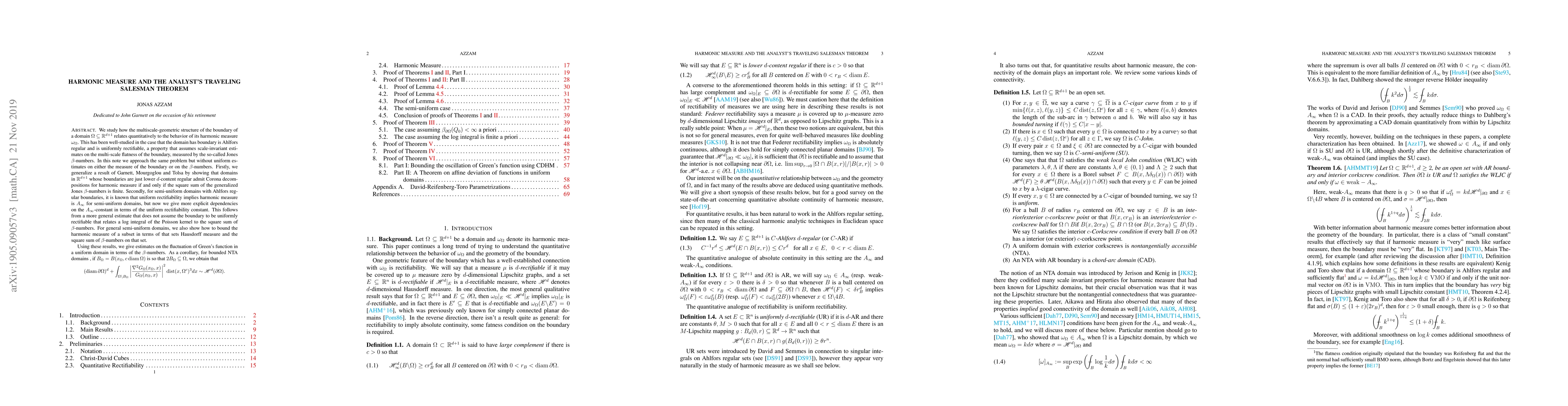 This paper explores the relationship between generalized Jones $\beta$-numbers and harmonic measure, proving that domains with lower $d$-content regular boundaries allow for Corona decompositions if the square sum of $\beta$-numbers is finite. It also provides explicit dependencies on $A_{\infty}$-constants for semi-uniform domains, and estimates the fluctuation of Green's function in uniform domains using $\beta$-numbers.