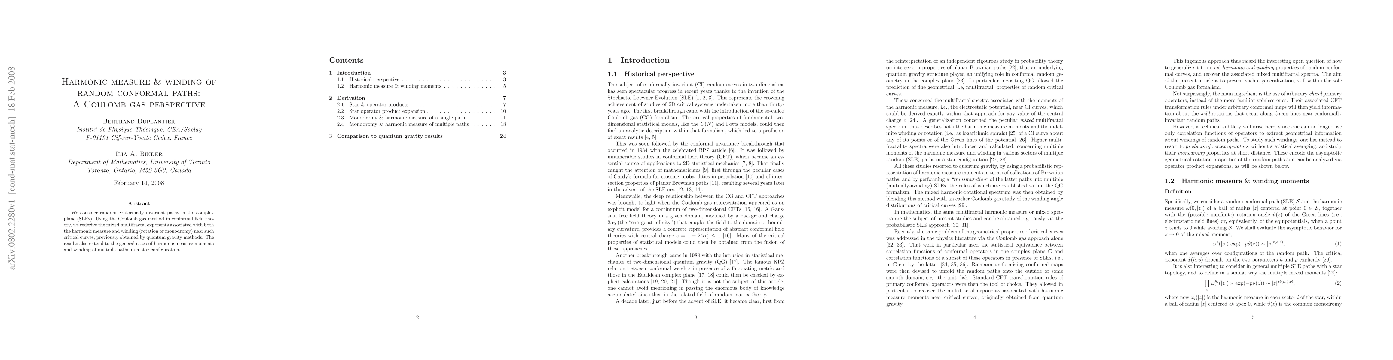 This paper explores random conformally invariant paths (SLEs) in the complex plane using the Coulomb gas method, deriving mixed multifractal exponents for harmonic measure and winding previously obtained by quantum gravity, and extending the results to harmonic measure moments and winding of multiple paths in a star configuration.