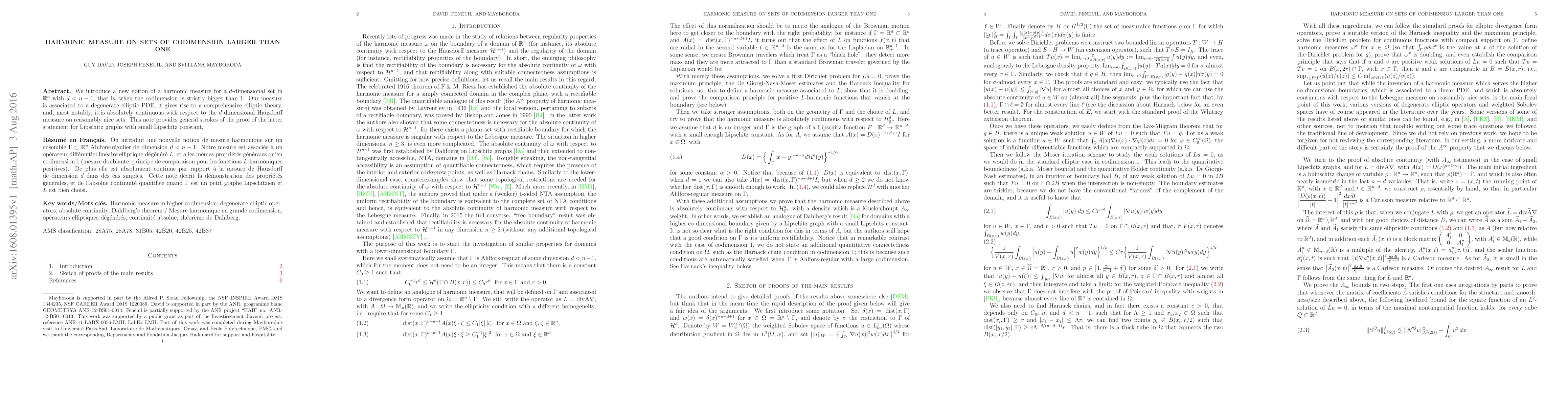 We introduce a new notion of a harmonic measure for a $d$-dimensional set in