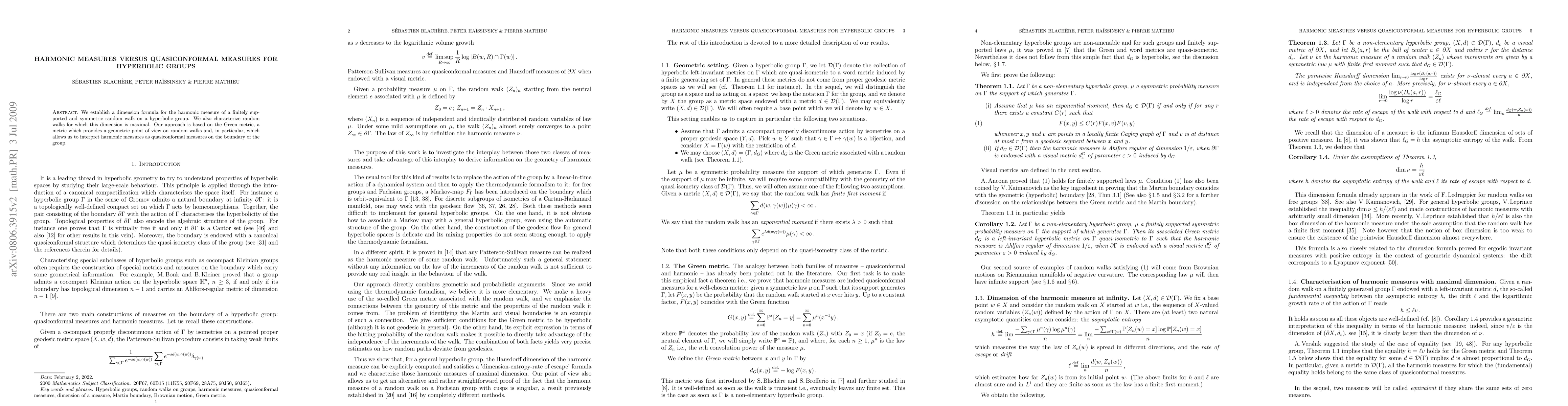 This paper establishes a dimension formula for harmonic measures in hyperbolic groups and characterizes random walks achieving maximal dimension. The study leverages the Green metric to interpret harmonic measures as quasiconformal measures on the group boundary.