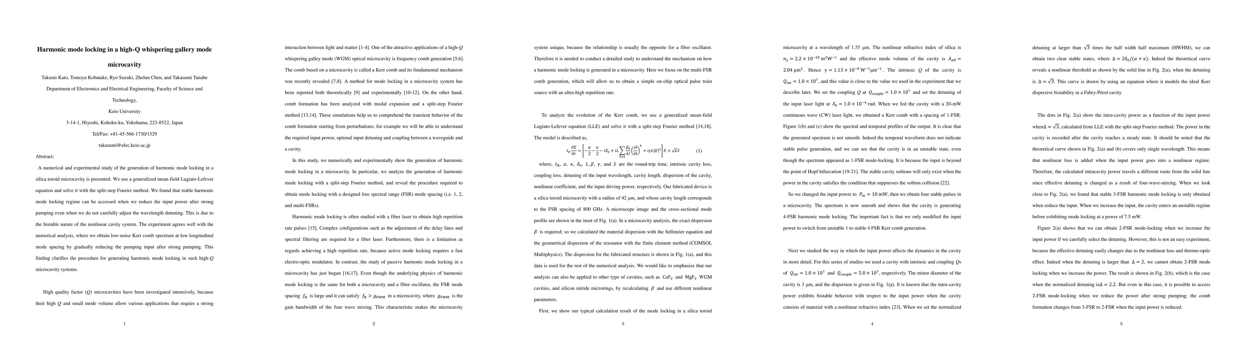 This paper investigates harmonic mode locking in a high-Q whispering gallery mode silica toroid microcavity, demonstrating both numerically and experimentally that stable harmonic mode locking can be achieved by reducing input power after strong pumping, due to the bistable nature of the system. The results show low-noise Kerr comb spectra, confirming the procedure for generating such mode locking in high-Q microcavity systems.