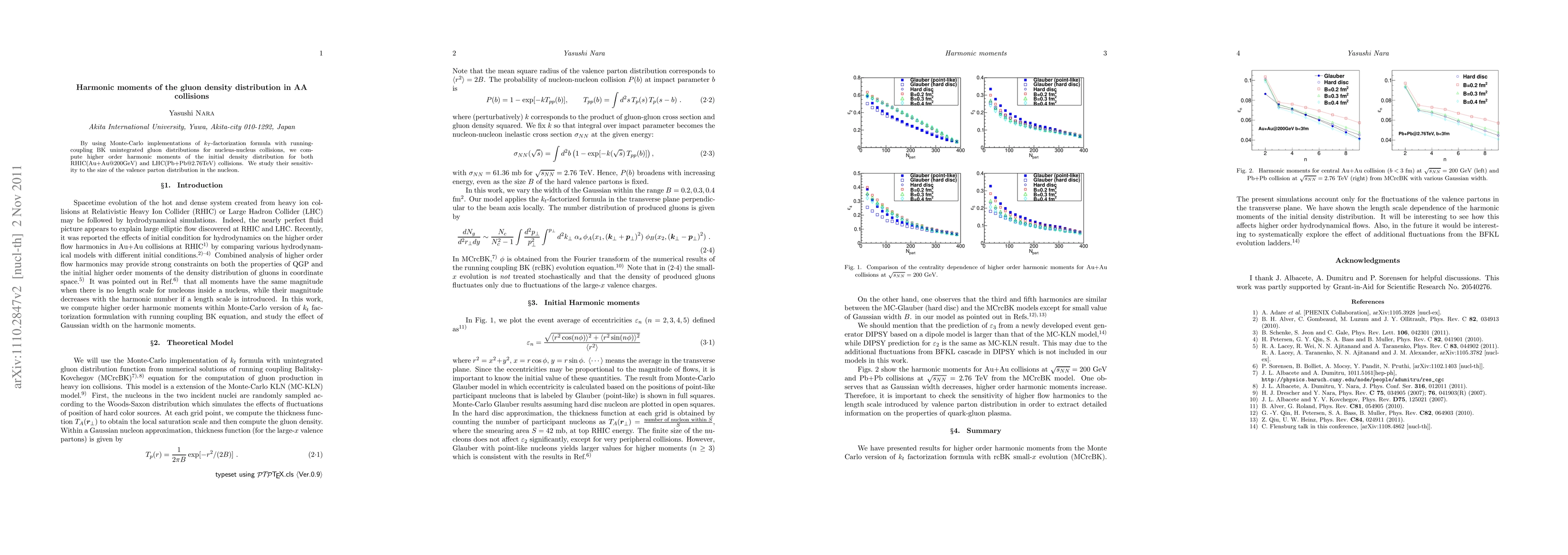 By using Monte-Carlo implementations of $k_T$-factorization formula with running-coupling BK unintegrated gluon distributions for nucleus-nucleus collisions, we compute higher order harmonic moments of the initial density distribution for both RHIC(Au+Au@200GeV) and LHC([email protected]) collisions. We study their sensitivity to the size of the valence parton distribution in the nucleon.