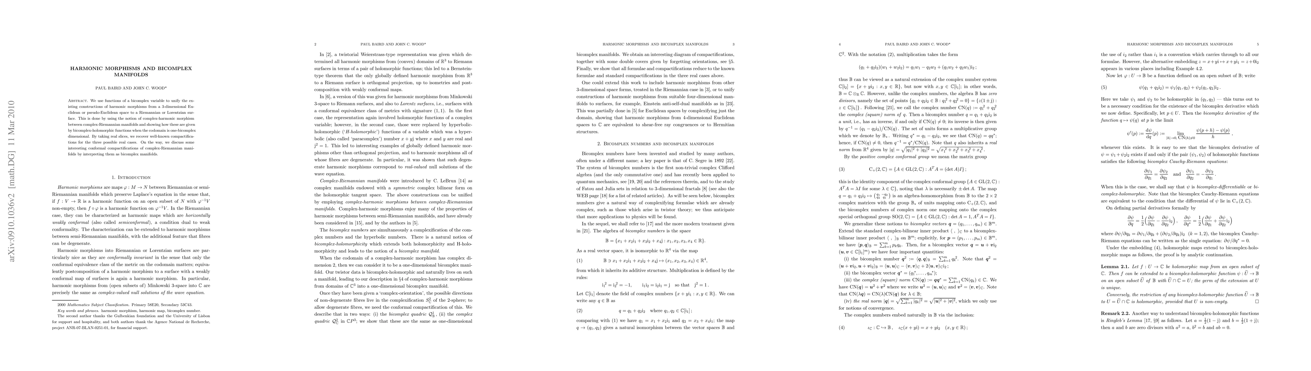 This paper unifies the constructions of harmonic morphisms from 3D Euclidean/pseudo-Euclidean spaces to Riemannian/Lorentzian surfaces using bicomplex functions. It shows that complex-harmonic morphisms correspond to bicomplex-holomorphic functions when the codomain is one-bicomplex dimensional.