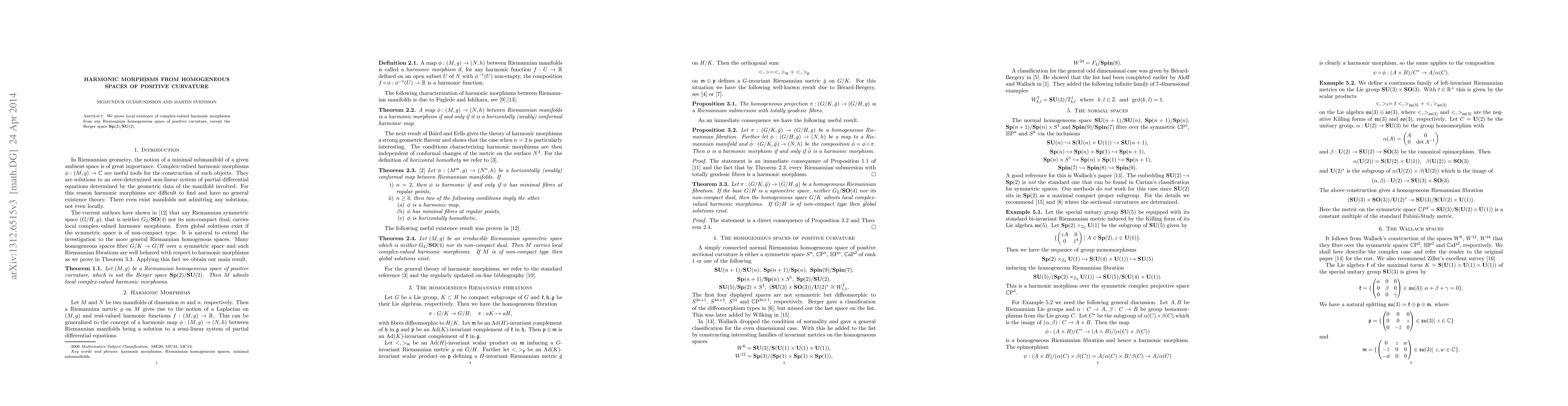 Summary: The paper establishes the local existence of complex-valued harmonic morphisms from Riemannian homogeneous spaces with positive curvature, excluding the Berger space Sp(2)/SU(2). This result contributes to the understanding of geometric mappings in positively curved spaces.