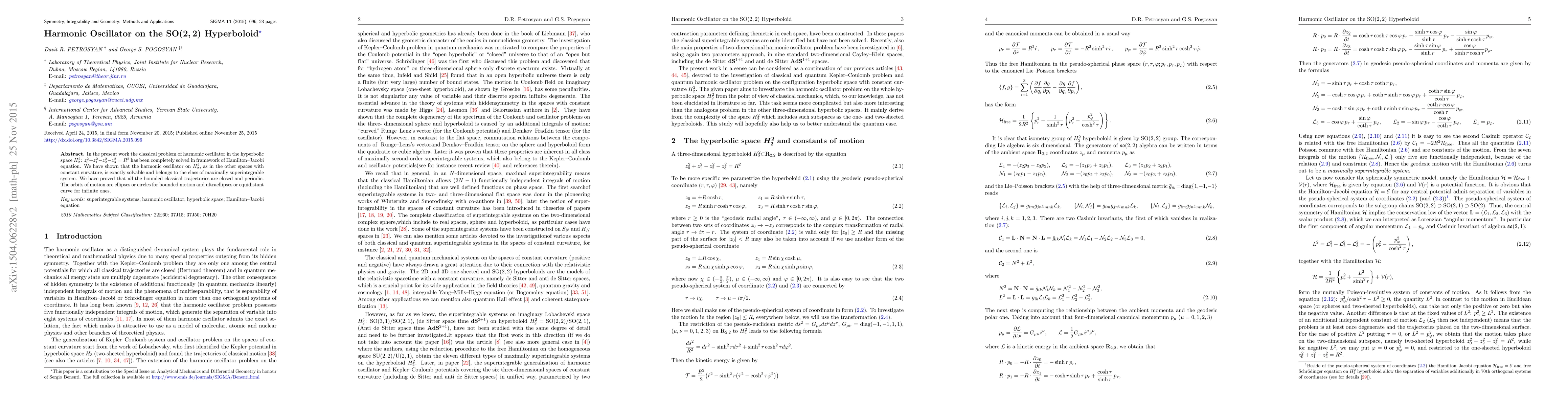 The harmonic oscillator on the SO(2,2) hyperboloid is exactly solvable and belongs to a class of maximally superintegrable systems, with bounded trajectories forming closed ellipses or circles.