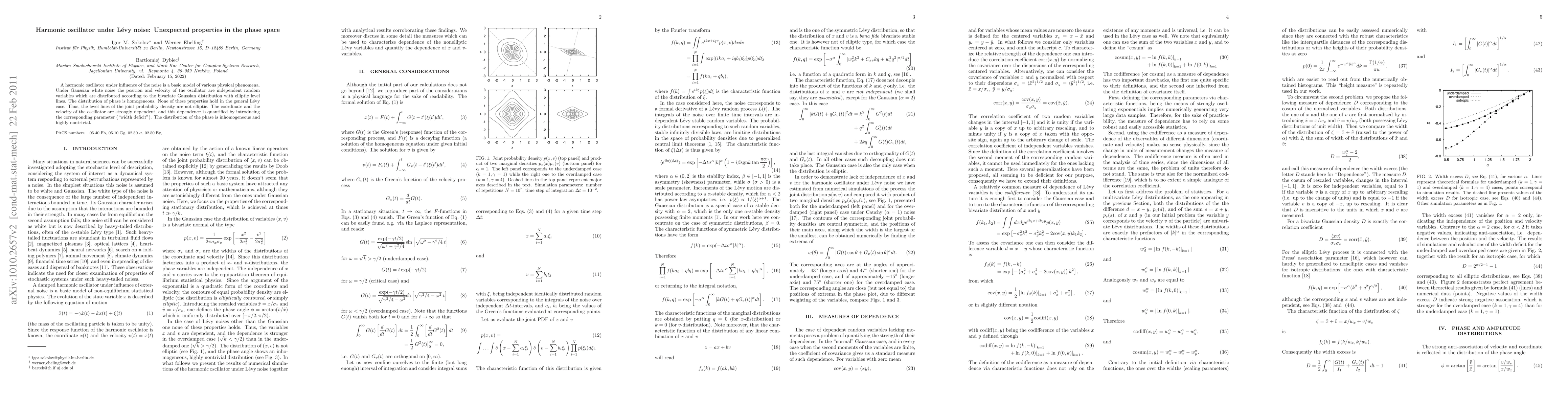 A harmonic oscillator under Levy noise exhibits unexpected phase space properties, including inhomogeneous and non-trivial distributions of position, velocity, and phase, which differ from those seen under Gaussian white noise.