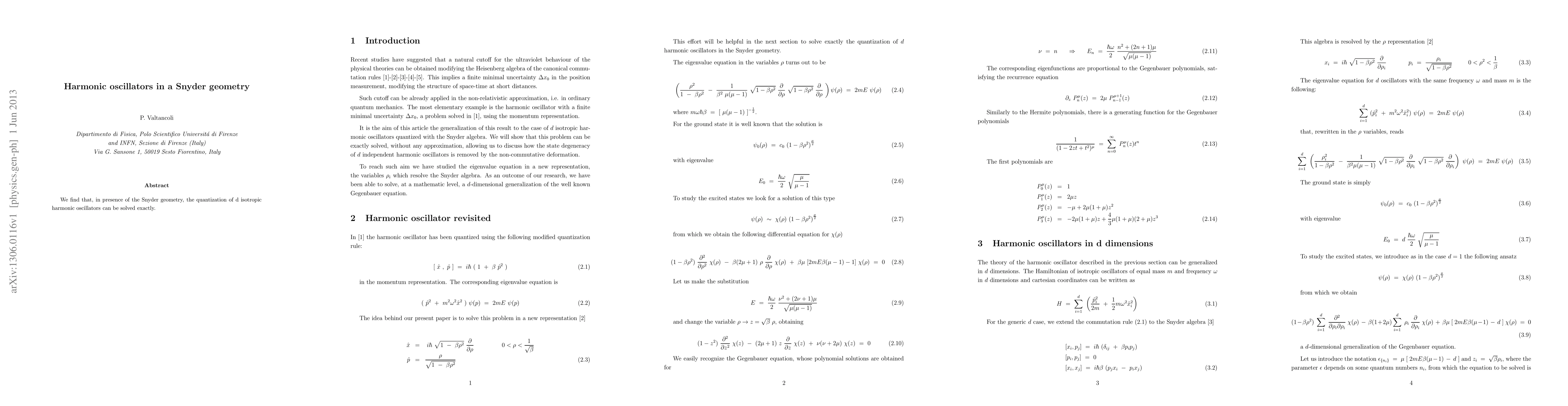 We find that, in presence of the Snyder geometry, the quantization of d isotropic harmonic oscillators can be solved exactly.