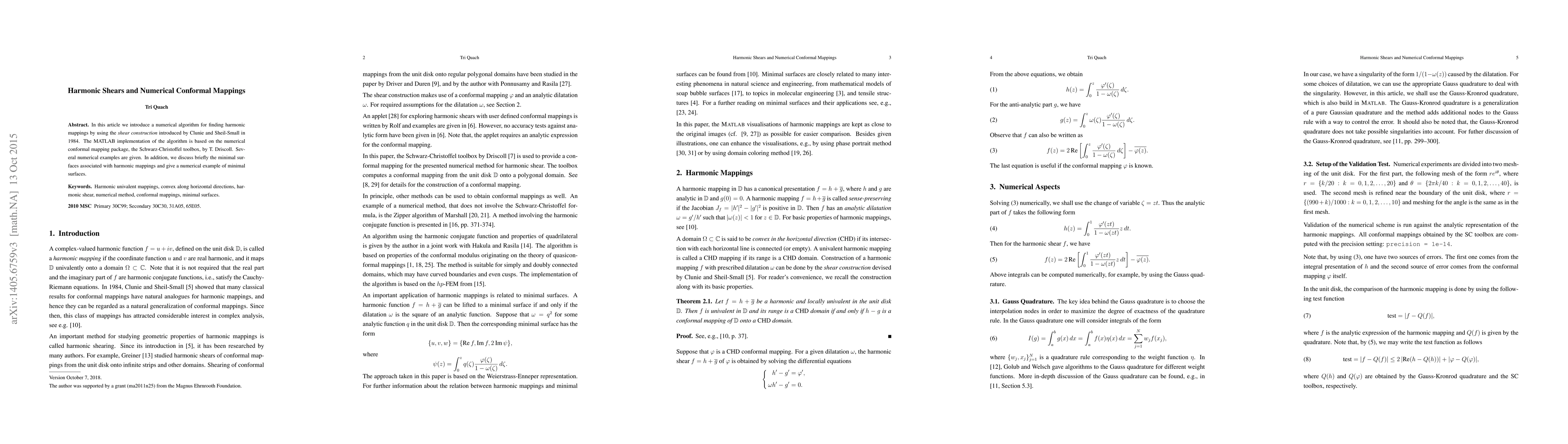 This paper presents a numerical algorithm for finding harmonic mappings using the shear construction method, implemented in MATLAB via the Schwarz-Christoffel toolbox. It includes several numerical examples and briefly discusses minimal surfaces associated with harmonic mappings, providing a numerical example of such surfaces.
