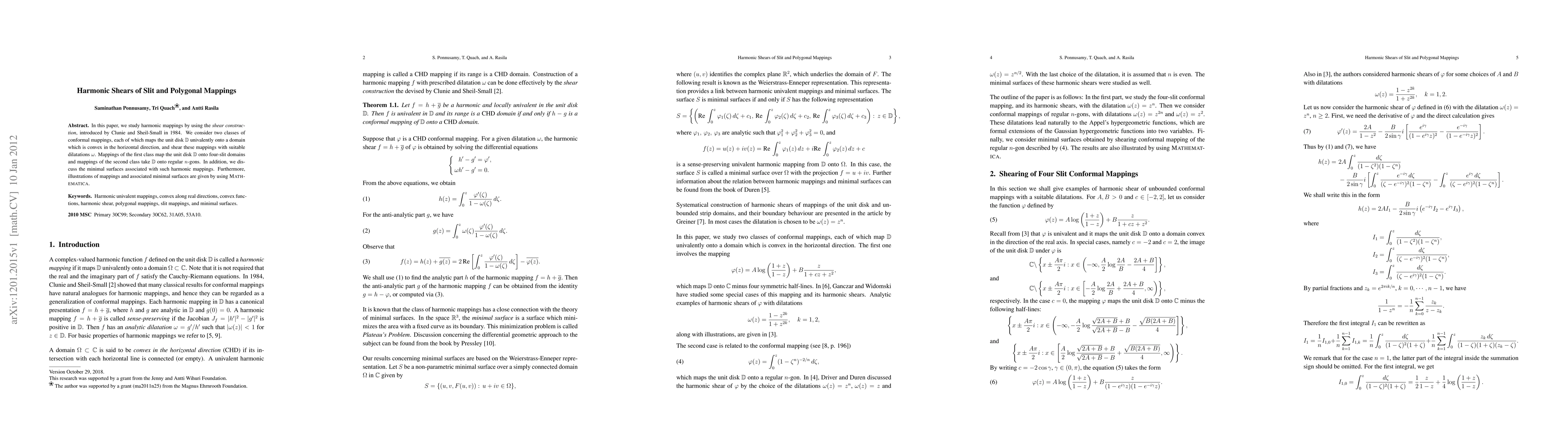 This paper investigates harmonic mappings via the shear construction, focusing on slit and polygonal mappings that map the unit disk to convex domains. It employs Mathematica to illustrate these mappings and their associated minimal surfaces.
