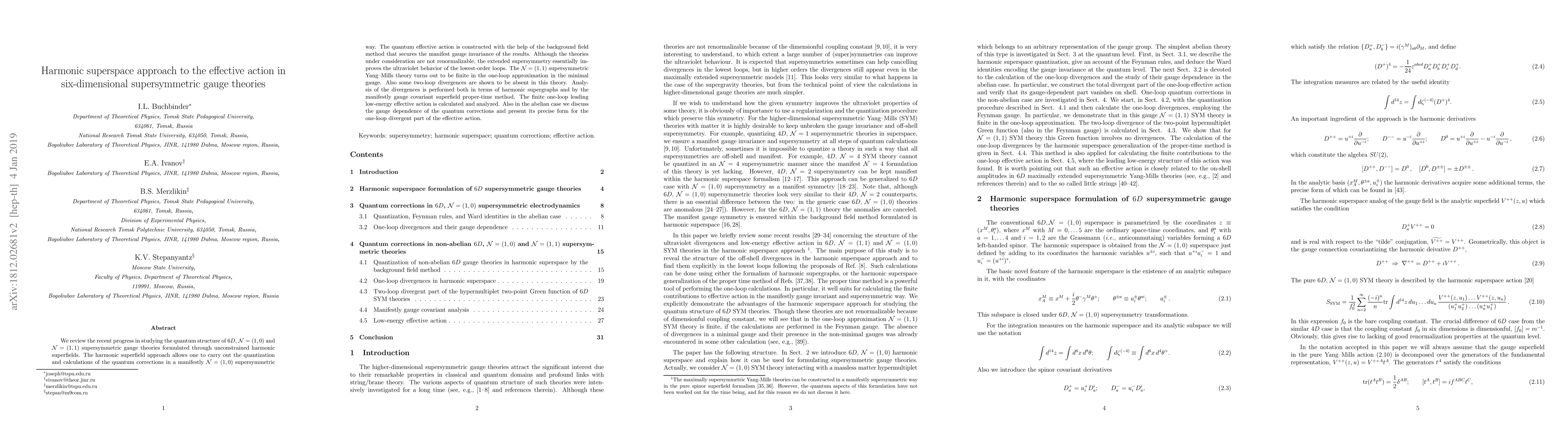 We review the recent progress in studying the quantum structure of $6D$, ${\cal N}=(1,0)$ and ${\cal N}=(1,1)$ supersymmetric gauge theories formulated through unconstrained harmonic superfields. The harmonic superfield approach allows one to carry out the quantization and calculations of the quantum corrections in a manifestly ${\cal N}=(1,0)$ supersymmetric way. The quantum effective action is constructed with the help of the background field method that secures the manifest gauge invariance of the results. Although the theories under consideration are not renormalizable, the extended supersymmetry essentially improves the ultraviolet behavior of the lowest-order loops. The ${\cal N}=(1,1)$ supersymmetric Yang--Mills theory turns out to be finite in the one-loop approximation in the minimal gauge. Also some two-loop divergences are shown to be absent in this theory. Analysis of the divergences is performed both in terms of harmonic supergraphs and by the manifestly gauge covariant superfield proper-time method. The finite one-loop leading low-energy effective action is calculated and analyzed. Also in the abelian case we discuss the gauge dependence of the quantum corrections and present its precise form for the one-loop divergent part of the effective action.
