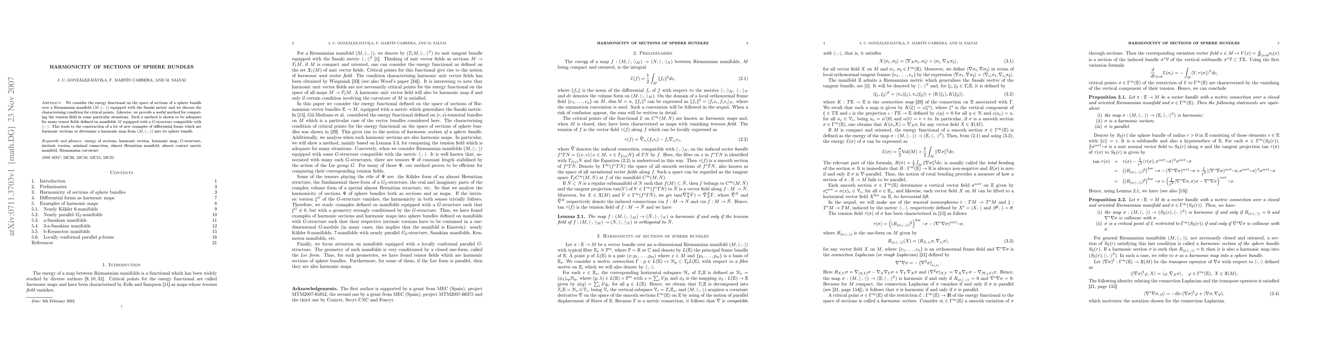 We consider the energy functional on the space of sections of a sphere bundle over a Riemannian manifold (M, <,>) equipped with the Sasaki metric and we discuss the characterising condition for critical points. Likewise, we provide a useful method for computing the tension field in some particular situations. Such a method is shown to be adequate for many tensor fields defined on manifolds M equipped with a G-structure compatible with <,>. This leads to the construction of a lot of new examples of differential forms which are harmonic sections or determine a harmonic map from (M,<,>) into its sphere bundle.