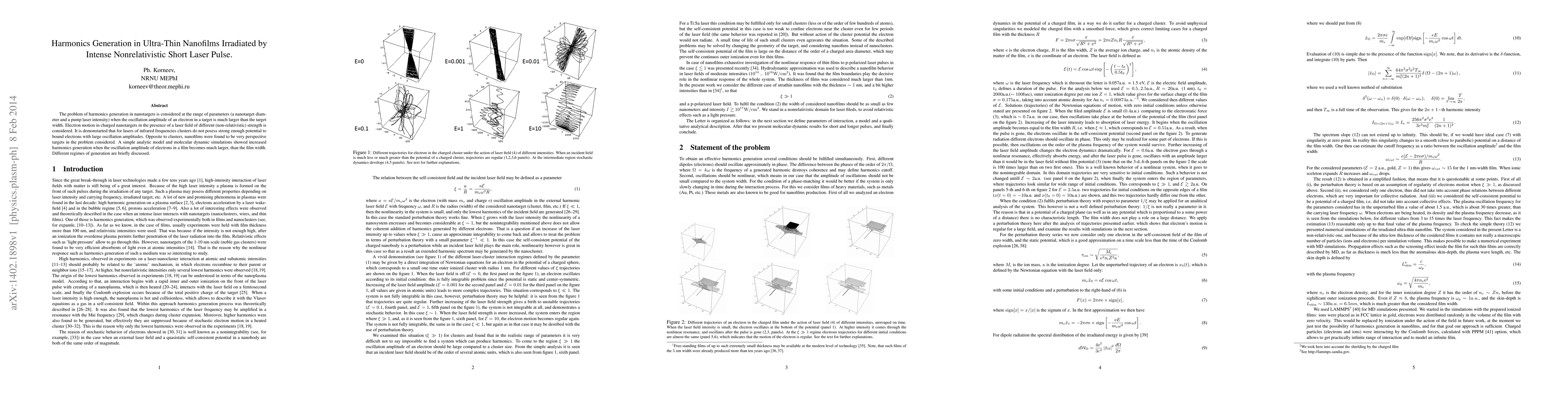 Nanofilms, not clusters, produce strong harmonics when exposed to intense laser pulses, according to this study. This finding has implications for materials science and laser technology applications.