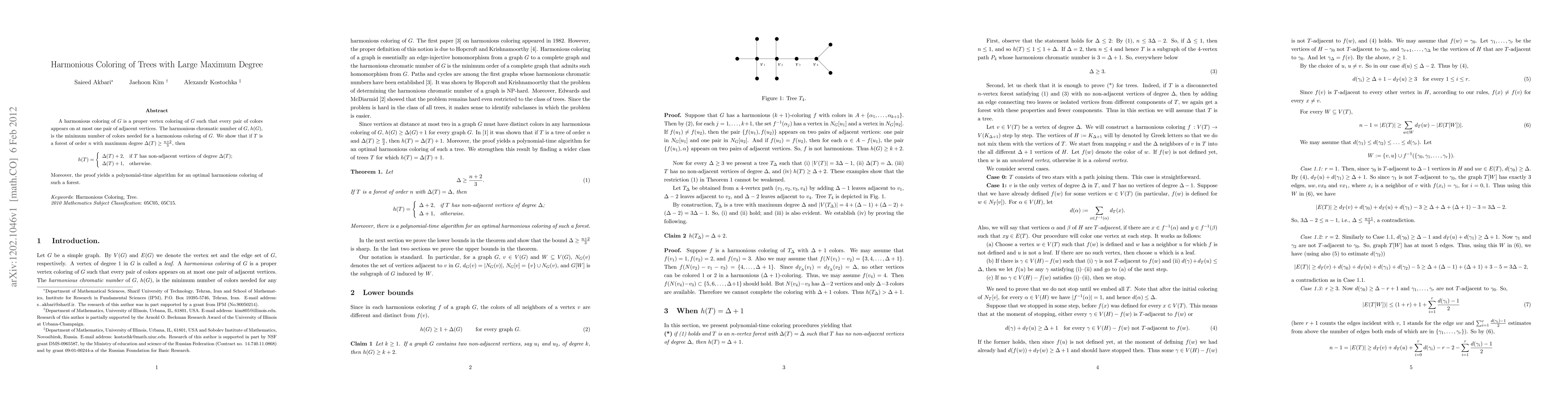 This paper establishes the harmonious chromatic number $h(T)$ for forests $T$ with a sufficiently large maximum degree $\Delta(T)$. It proves that $h(T)$ equals $\Delta(T)+2$ if all degree $\Delta(T)$ vertices are non-adjacent, and $\Delta(T)+1$ otherwise, with an accompanying polynomial-time algorithm for optimal harmonious coloring.