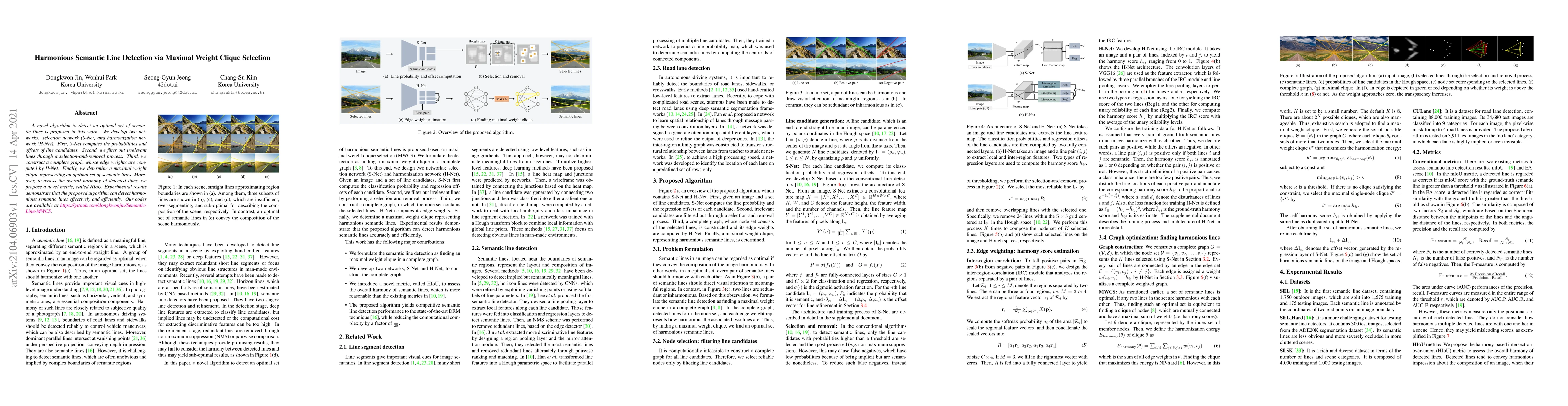 A novel algorithm to detect an optimal set of semantic lines is proposed in this work. We develop two networks: selection network (S-Net) and harmonization network (H-Net). First, S-Net computes the probabilities and offsets of line candidates. Second, we filter out irrelevant lines through a selection-and-removal process. Third, we construct a complete graph, whose edge weights are computed by H-Net. Finally, we determine a maximal weight clique representing an optimal set of semantic lines. Moreover, to assess the overall harmony of detected lines, we propose a novel metric, called HIoU. Experimental results demonstrate that the proposed algorithm can detect harmonious semantic lines effectively and efficiently. Our codes are available at https://github.com/dongkwonjin/Semantic-Line-MWCS.
