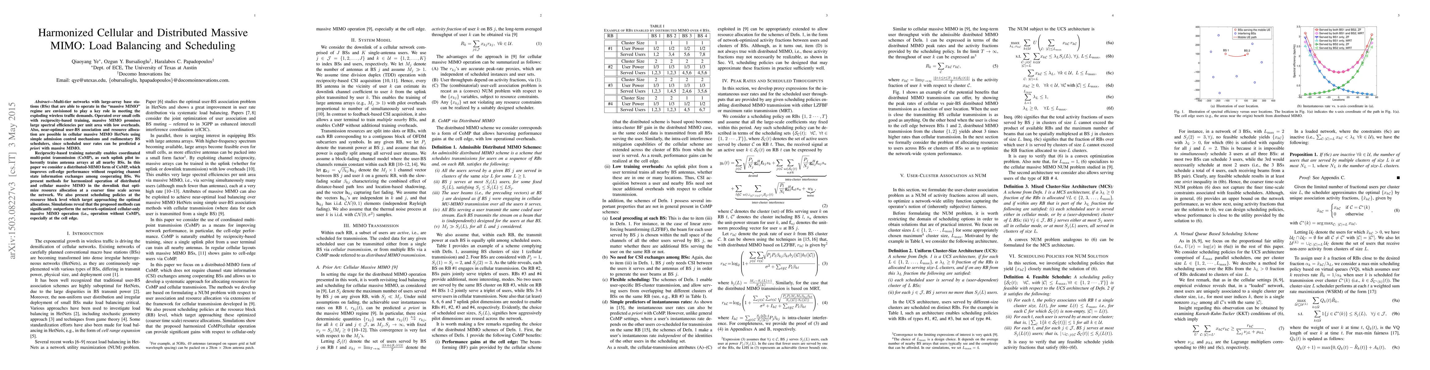 This paper explores the harmonization of distributed and cellular massive MIMO in multi-tier networks, focusing on load balancing and scheduling optimization. It proposes methods for coordinated multi-point transmission without inter-BS channel state information, achieving significant performance improvements, particularly at cell edges, compared to cellular-only massive MIMO.