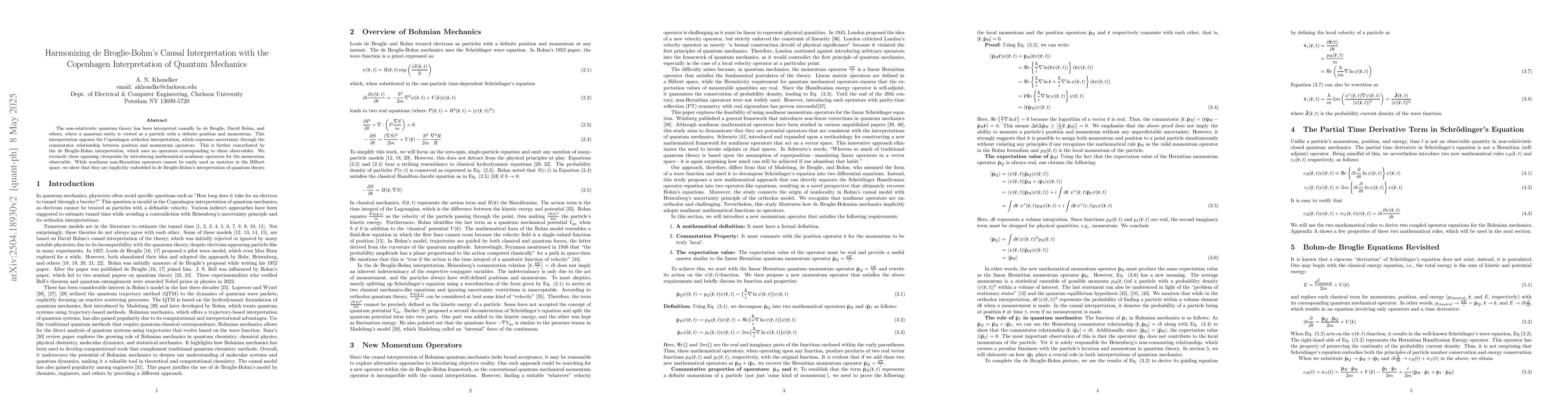 The paper presents a novel approach by introducing nonlinear operators for momentum observable, effectively harmonizing de Broglie-Bohm's causal interpretation with the Copenhagen interpretation.