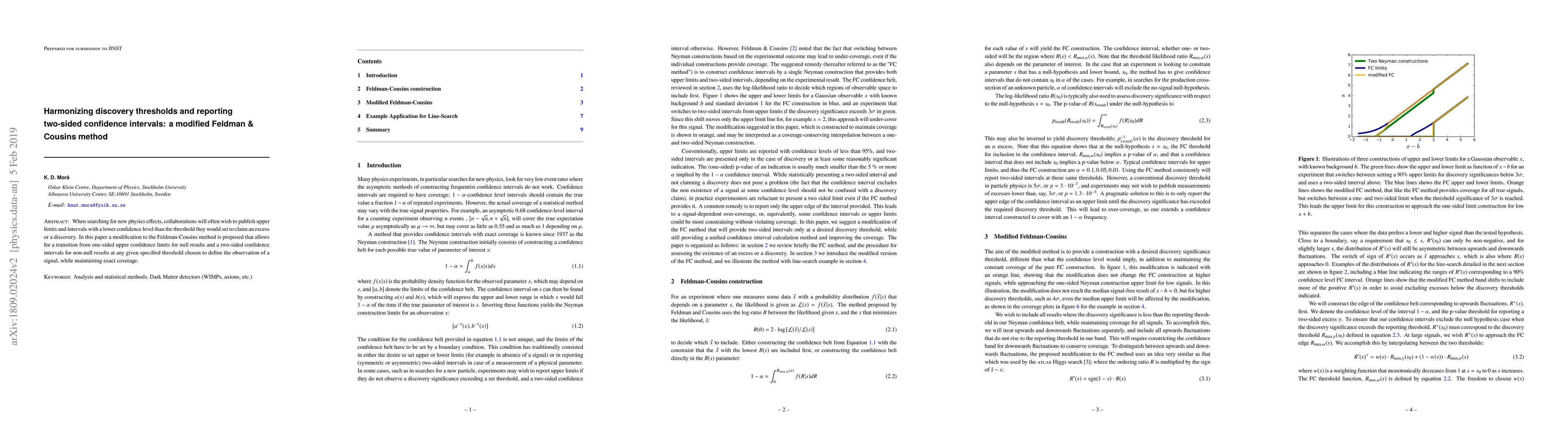 This paper proposes a modified Feldman & Cousins method to report two-sided confidence intervals with a lower confidence level than the discovery threshold, addressing the issue of overcoverage in traditional methods when reporting upper limits in new physics searches. The modification allows for a more accurate representation of the uncertainty in the absence of a signal.