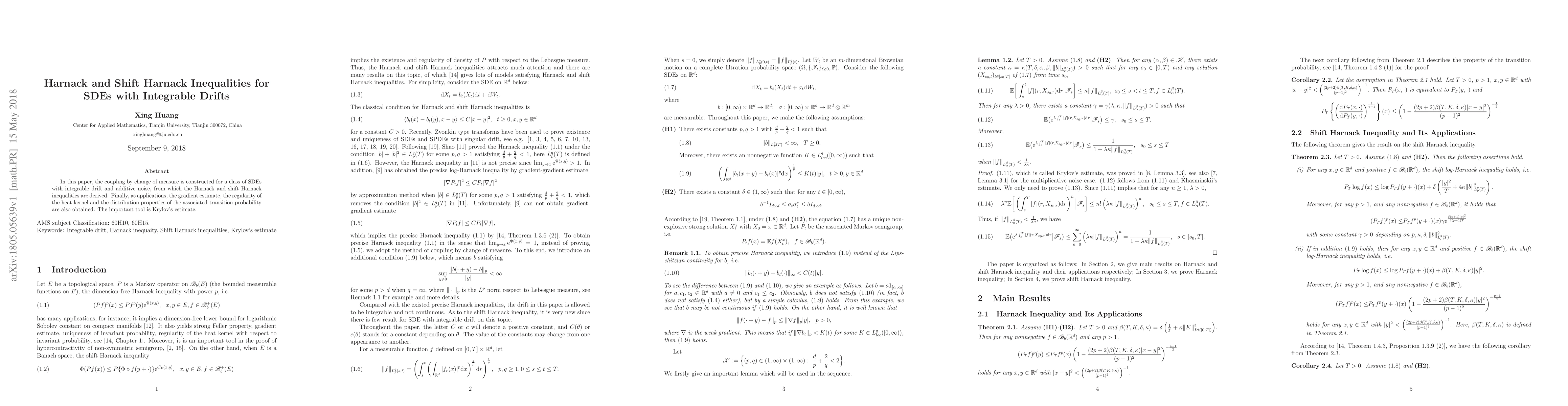 The paper presents a novel approach for deriving Harnack and shift Harnack inequalities for SDEs with integrable drifts, utilizing Krylov's estimate and coupling by change of measure techniques.