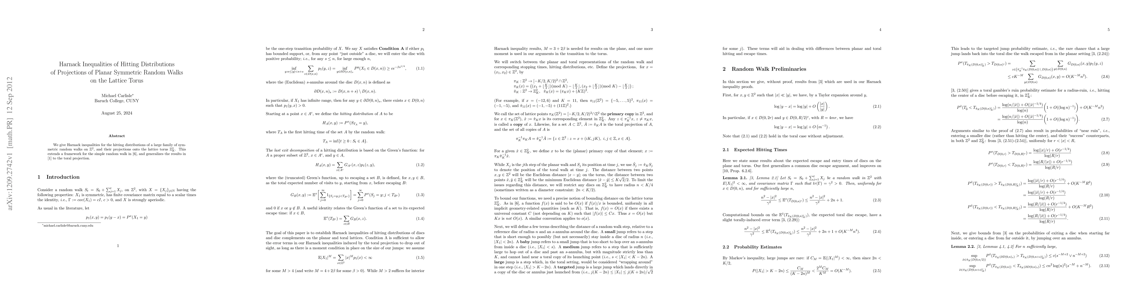 We give Harnack inequalities for the hitting distributions of a large family of symmetric random walks on $\Z^2$, and their projections onto the lattice torus $\Z^2_K$. This extends a framework for the simple random walk in Dembo, et al. (2006), and generalizes the results in Bass, Rosen (2007) to the toral projection.