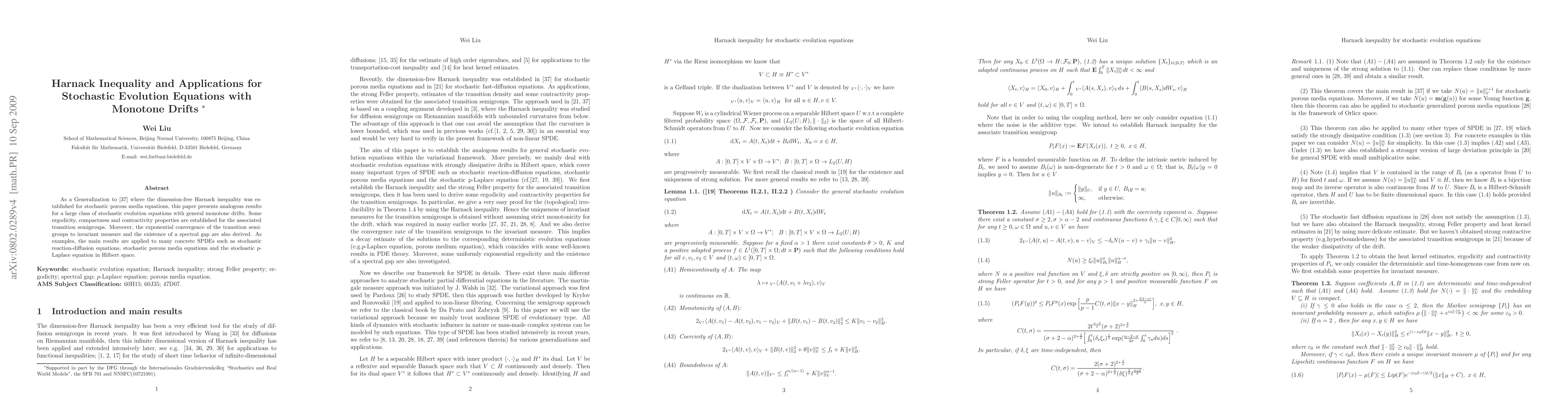 This paper proves a dimension-free Harnack inequality for stochastic evolution equations with monotone drifts, establishing ergodicity, hyper-contractivity, and compactness for the transition semigroups. Applications include exponential convergence to invariant measures and spectral gap existence for specific stochastic equations like reaction-diffusion and porous media models.