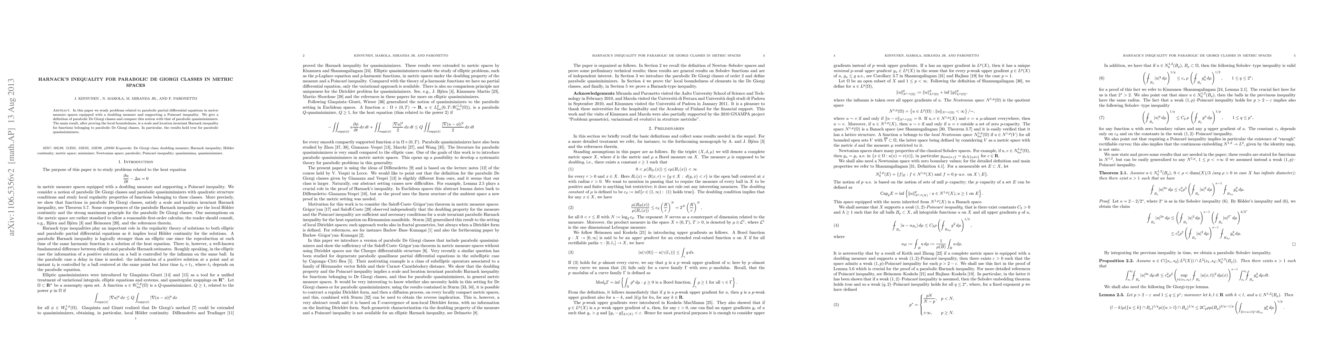 This paper defines parabolic De Giorgi classes in metric measure spaces and establishes a scale and location invariant Harnack inequality for functions within these classes, extending the results to parabolic quasiminimizers. The study also proves local boundedness for these functions.