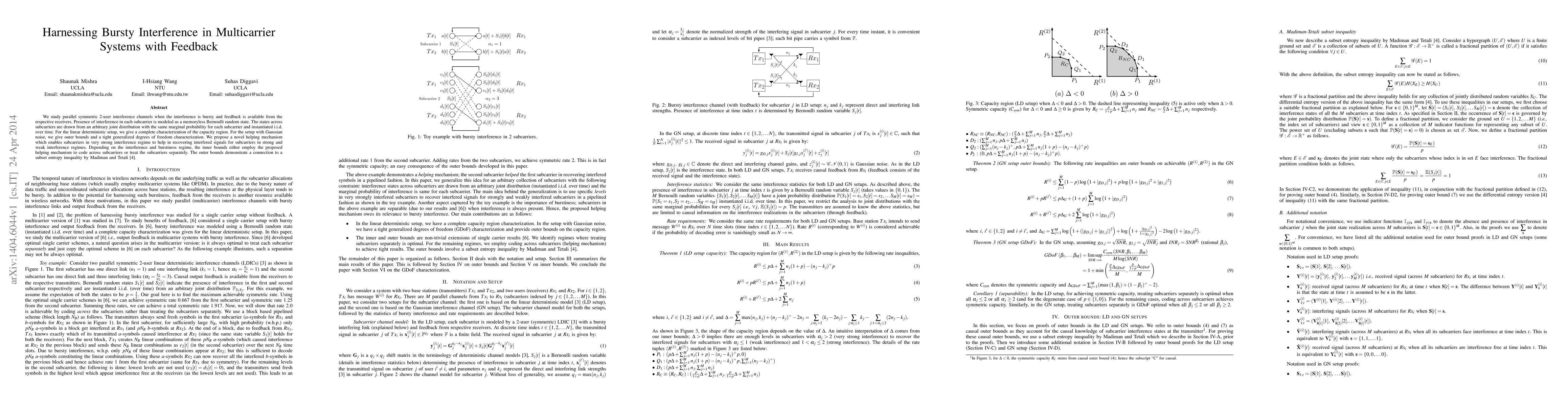 We study parallel symmetric 2-user interference channels when the interference is bursty and feedback is available from the respective receivers. Presence of interference in each subcarrier is modeled as a memoryless Bernoulli random state. The states across subcarriers are drawn from an arbitrary joint distribution with the same marginal probability for each subcarrier and instantiated i.i.d. over time. For the linear deterministic setup, we give a complete characterization of the capacity region. For the setup with Gaussian noise, we give outer bounds and a tight generalized degrees of freedom characterization. We propose a novel helping mechanism which enables subcarriers in very strong interference regime to help in recovering interfered signals for subcarriers in strong and weak interference regimes. Depending on the interference and burstiness regime, the inner bounds either employ the proposed helping mechanism to code across subcarriers or treat the subcarriers separately. The outer bounds demonstrate a connection to a subset entropy inequality by Madiman and Tetali.
