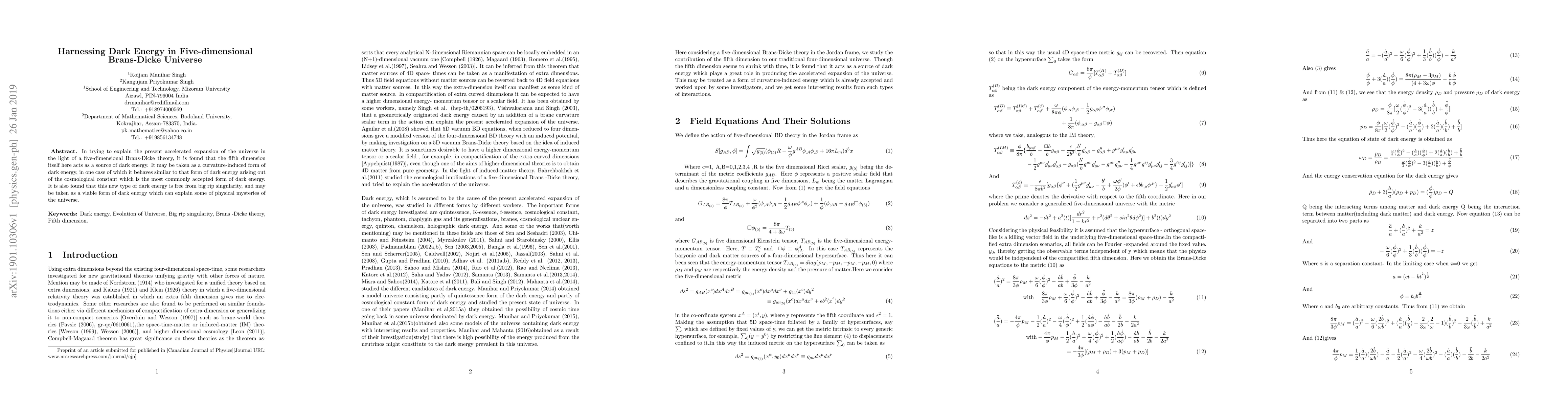 A five-dimensional Brans-Dicke theory reveals that a new type of dark energy, induced by curvature, is a viable explanation for the universe's accelerated expansion, potentially resolving some physical mysteries.