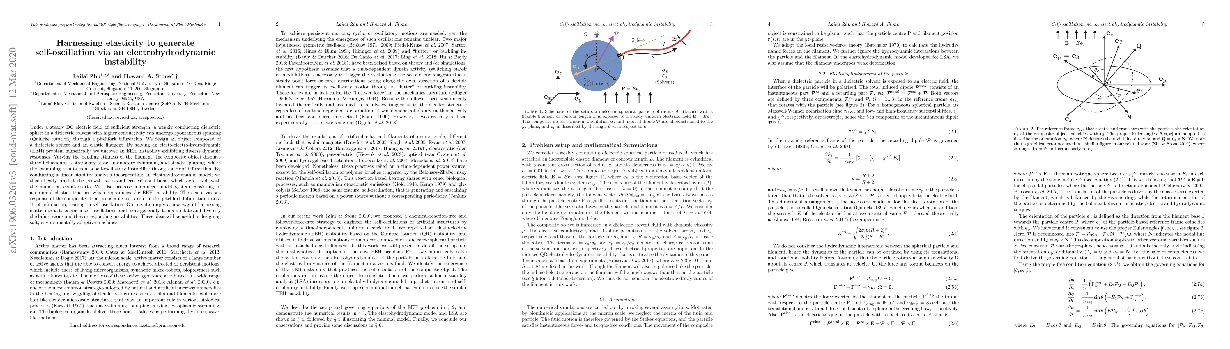 This paper investigates how elasticity can induce self-oscillation in dielectric spheres via electrohydrodynamic instability, demonstrating three dynamic behaviors: stationary, swimming, and spinning. Theoretical and numerical analyses reveal the transformation of pitchfork to Hopf bifurcations through elasto-viscous responses, offering insights into designing adaptive soft machines.