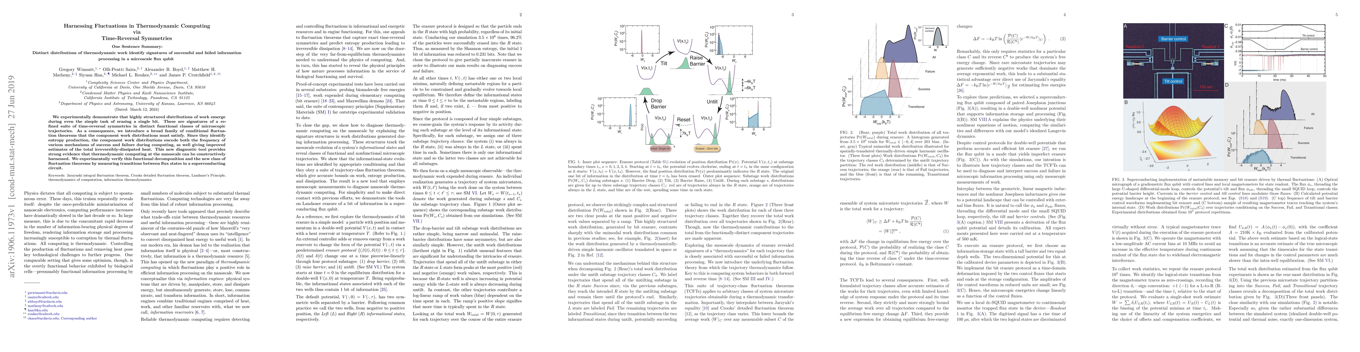 We experimentally demonstrate that highly structured distributions of work emerge during even the simple task of erasing a single bit. These are signatures of a refined suite of time-reversal symmetries in distinct functional classes of microscopic trajectories. As a consequence, we introduce a broad family of conditional fluctuation theorems that the component work distributions must satisfy. Since they identify entropy production, the component work distributions encode both the frequency of various mechanisms of success and failure during computing, as well giving improved estimates of the total irreversibly-dissipated heat. This new diagnostic tool provides strong evidence that thermodynamic computing at the nanoscale can be constructively harnessed. We experimentally verify this functional decomposition and the new class of fluctuation theorems by measuring transitions between flux states in a superconducting circuit.