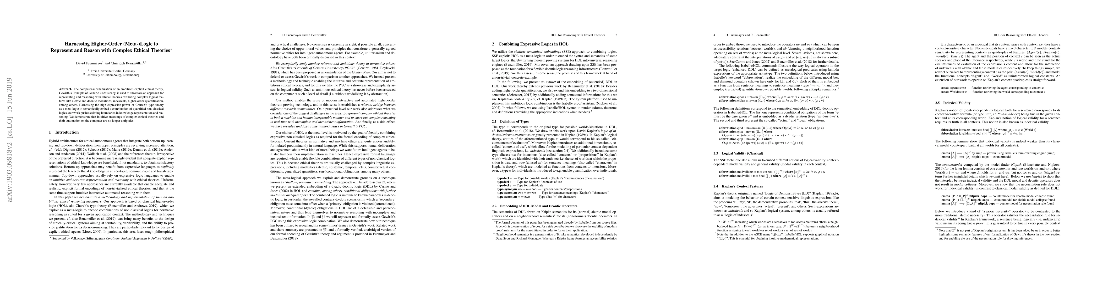 The computer-mechanization of an ambitious explicit ethical theory, Gewirth's Principle of Generic Consistency, is used to showcase an approach for representing and reasoning with ethical theories exhibiting complex logical features like alethic and deontic modalities, indexicals, higher-order quantification, among others. Harnessing the high expressive power of Church's type theory as a meta-logic to semantically embed a combination of quantified non-classical logics, our work pushes existing boundaries in knowledge representation and reasoning. We demonstrate that intuitive encodings of complex ethical theories and their automation on the computer are no longer antipodes.