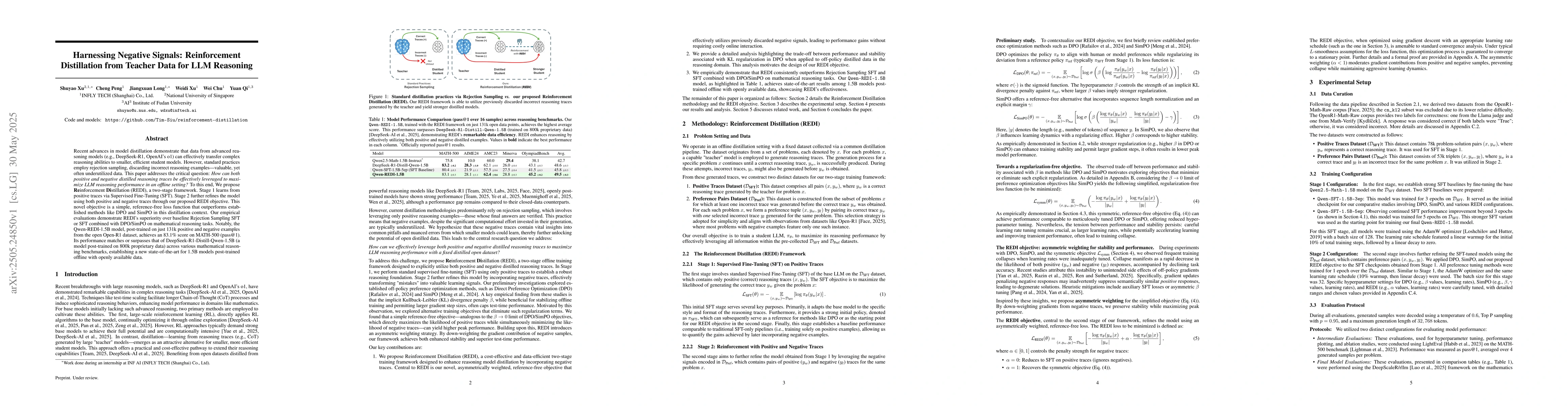 A new method called Reinforcement Distillation (REDI) uses both positive and negative examples to improve large language model reasoning, achieving better results than existing methods with limited data.