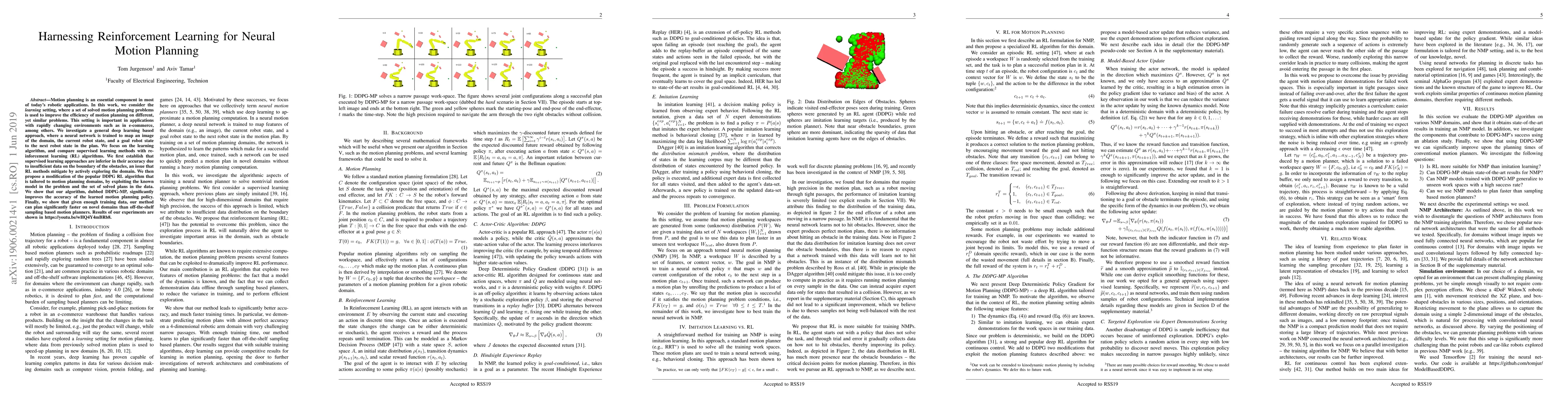 This paper explores using reinforcement learning to enhance neural motion planning for robots, demonstrating that reinforcement learning outperforms supervised learning due to its ability to explore the environment. It proposes a tailored DDPG RL algorithm, DDPG-MP, which leverages known models and solved plans to improve motion planning accuracy and efficiency in dynamic environments.
