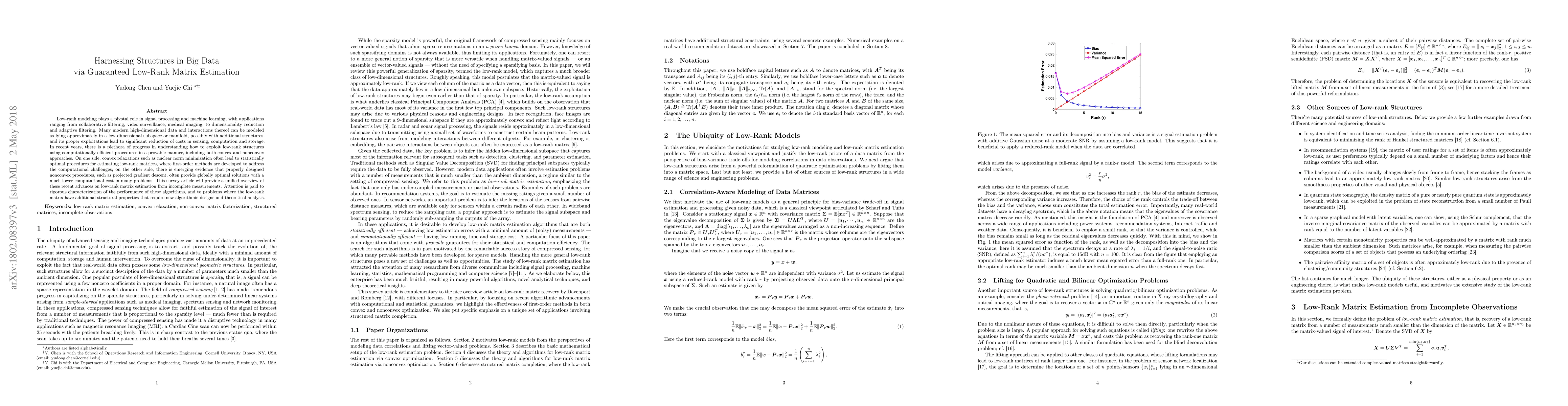 This paper surveys recent advances in low-rank matrix estimation techniques, focusing on both convex and nonconvex approaches for exploiting low-rank structures in big data. It highlights the computational efficiency and theoretical performance of these methods, especially in scenarios with additional structural properties.