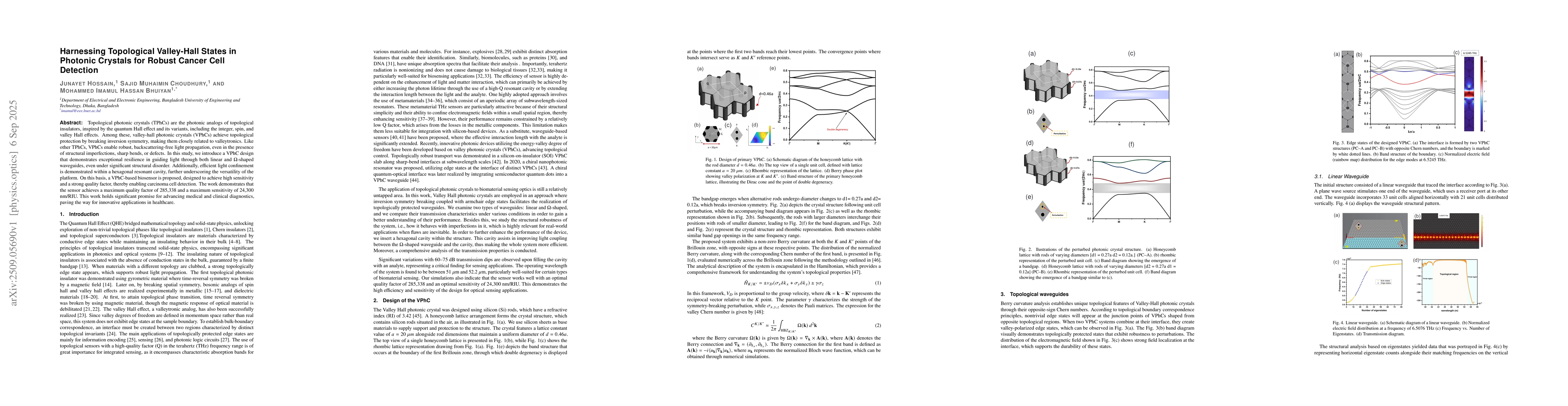 Topological photonic crystals (TPhCs) are the photonic analogs of topological insulators, inspired by the quantum Hall effect and its variants, including the integer, spin, and valley Hall effects. Among these, valley-hall photonic crystals (VPhCs) achieve topological protection by breaking inversion symmetry, making them closely related to valleytronics. Like other TPhCs, VPhCs enable robust, backscattering-free light propagation, even in the presence of structural imperfections, sharp bends, or defects. In this study, we introduce a VPhC design that demonstrates exceptional resilience in guiding light through both linear and \(\Omega\)-shaped waveguides, even under significant structural disorder. Additionally, efficient light confinement is demonstrated within a hexagonal resonant cavity, further underscoring the versatility of the platform. On this basis, a VPhC-based biosensor is proposed, designed to achieve high sensitivity and a strong quality factor, thereby enabling carcinoma cell detection. The work demonstrates that the sensor achieves a maximum quality factor of 285,338 and a maximum sensitivity of 24,300 nm/RIU. This work holds significant promise for advancing medical and clinical diagnostics, paving the way for innovative applications in healthcare.