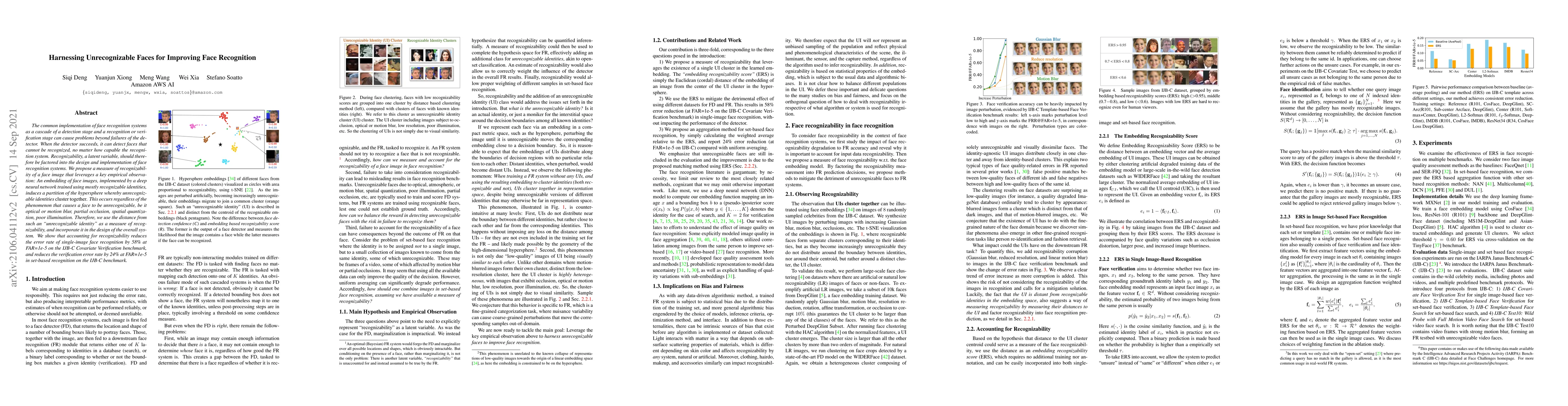 The common implementation of face recognition systems as a cascade of a detection stage and a recognition or verification stage can cause problems beyond failures of the detector. When the detector succeeds, it can detect faces that cannot be recognized, no matter how capable the recognition system. Recognizability, a latent variable, should therefore be factored into the design and implementation of face recognition systems. We propose a measure of recognizability of a face image that leverages a key empirical observation: an embedding of face images, implemented by a deep neural network trained using mostly recognizable identities, induces a partition of the hypersphere whereby unrecognizable identities cluster together. This occurs regardless of the phenomenon that causes a face to be unrecognizable, it be optical or motion blur, partial occlusion, spatial quantization, poor illumination. Therefore, we use the distance from such an "unrecognizable identity" as a measure of recognizability, and incorporate it in the design of the over-all system. We show that accounting for recognizability reduces error rate of single-image face recognition by 58% at FAR=1e-5 on the IJB-C Covariate Verification benchmark, and reduces verification error rate by 24% at FAR=1e-5 in set-based recognition on the IJB-C benchmark.