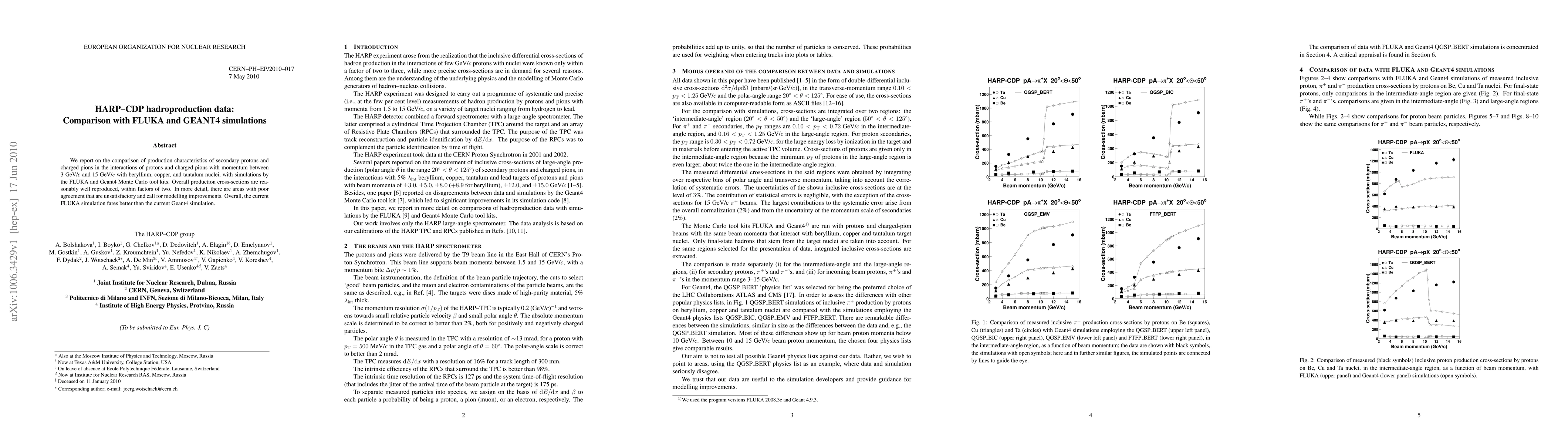 This paper compares experimental data from HARP-CDP on the production of secondary protons and charged pions in high-energy interactions with beryllium, copper, and tantalum, to simulations using FLUKA and GEANT4. While overall production cross-sections are reasonably well reproduced within factors of two, specific areas show poor agreement, indicating a need for simulation improvements, with FLUKA performing better than GEANT4.
