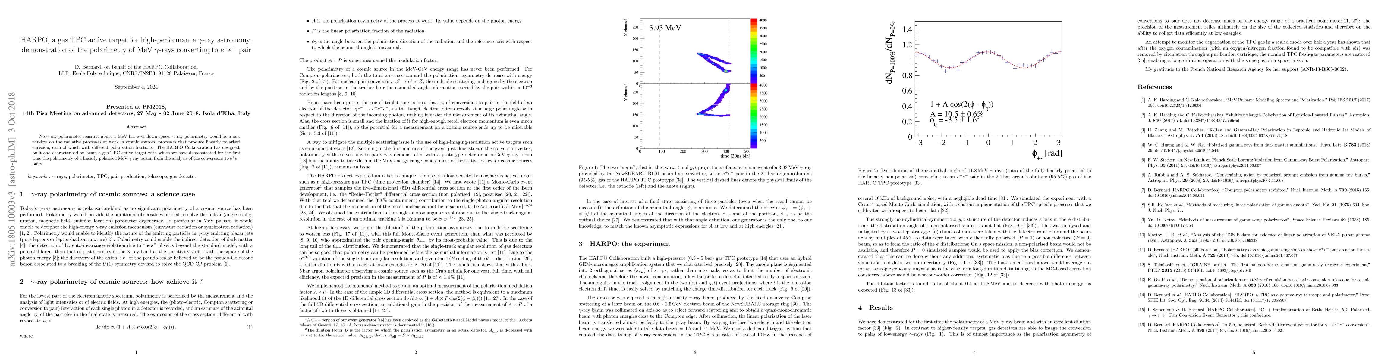 The HARPO Collaboration developed a gas TPC active target to demonstrate the first polarimetry of MeV gamma rays, showing the potential for new insights into cosmic radiative processes through linearly polarized emissions. This marks the first time such high-energy gamma-ray polarimetry has been achieved.