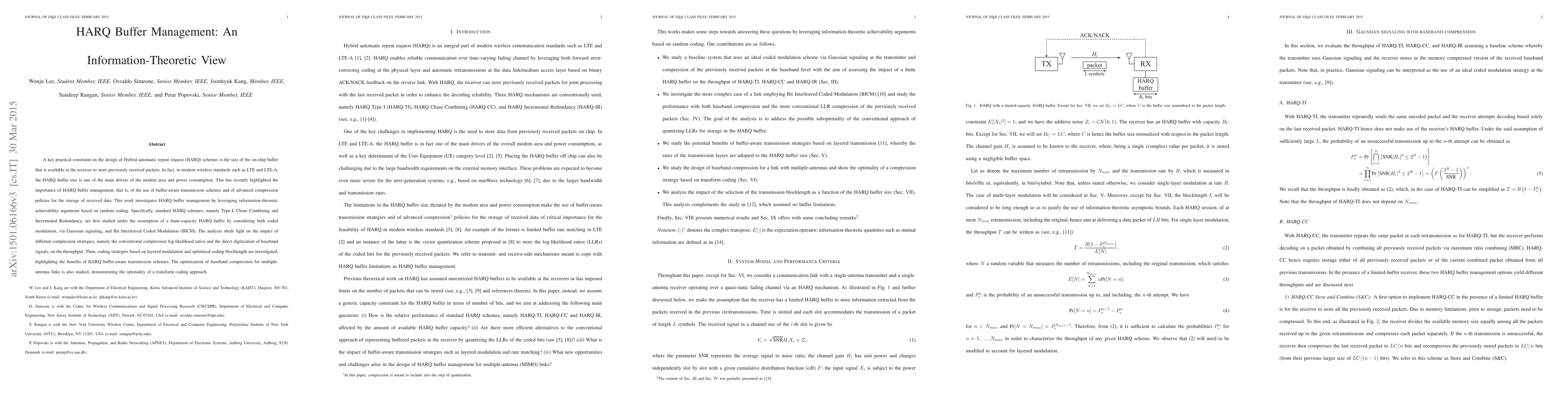This paper explores HARQ buffer management using information-theoretic methods, analyzing the impact of buffer size on throughput for various HARQ schemes. It investigates the benefits of buffer-aware transmission and optimized coding strategies, and demonstrates the effectiveness of transform coding for multiple-antenna links.
