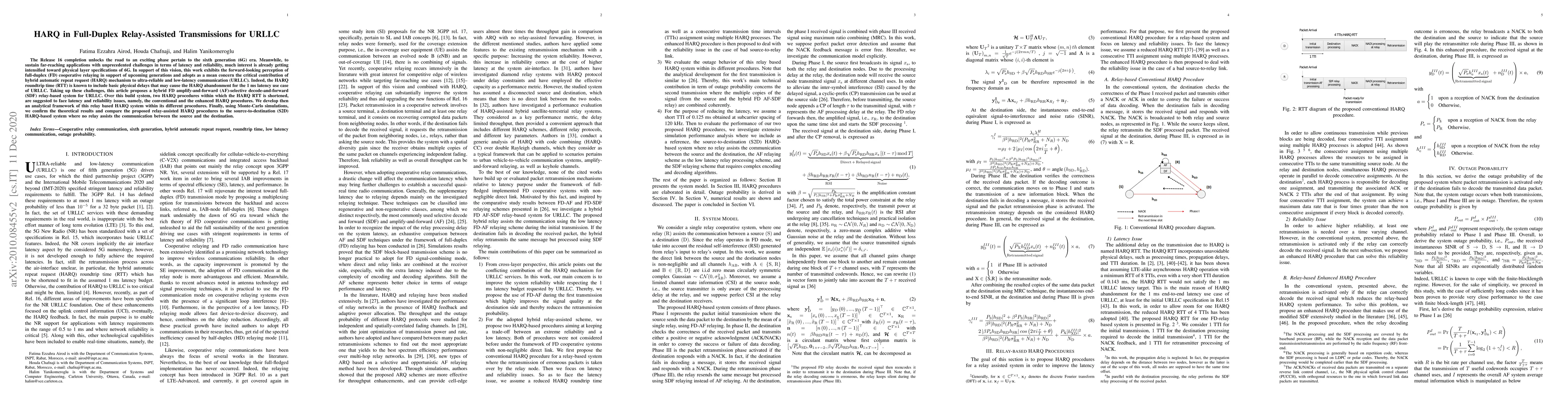 This paper proposes a hybrid full-duplex relay-assisted system for ultra-reliable low-latency communication (URLLC), using HARQ mechanisms to enhance latency and reliability, and compares its performance to traditional source-to-destination HARQ systems.