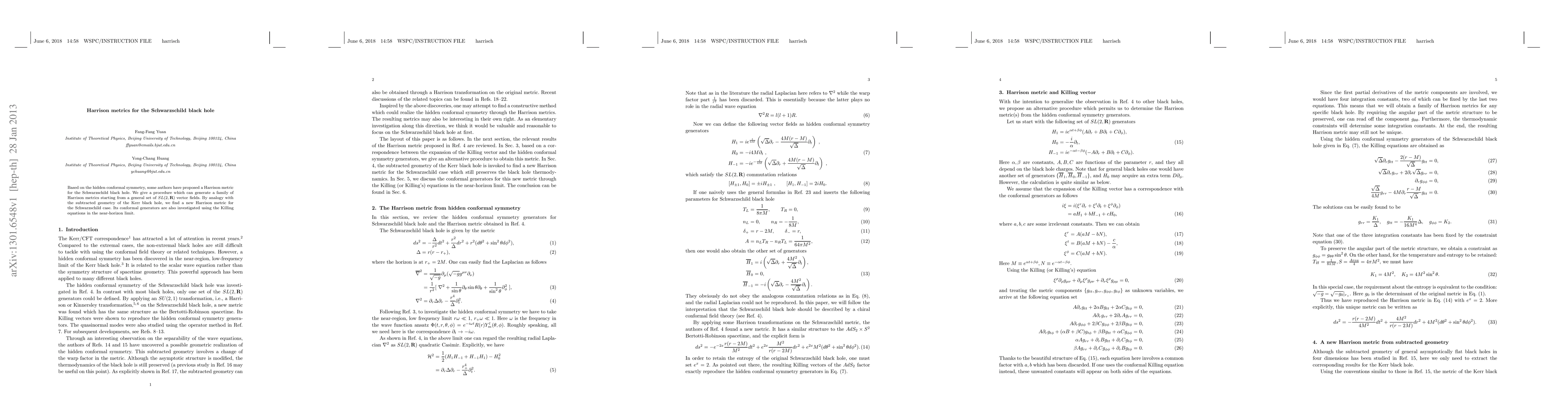 Based on the hidden conformal symmetry, some authors have proposed a Harrison metric for the Schwarzschild black hole. We give a procedure which can generate a family of Harrison metrics starting from a general set of SL(2, R) vector fields. By analogy with the subtracted geometry of the Kerr black hole, we find a new Harrison metric for the Schwarzschild case. Its conformal generators are also investigated using the Killing equations in the near-horizon limit.