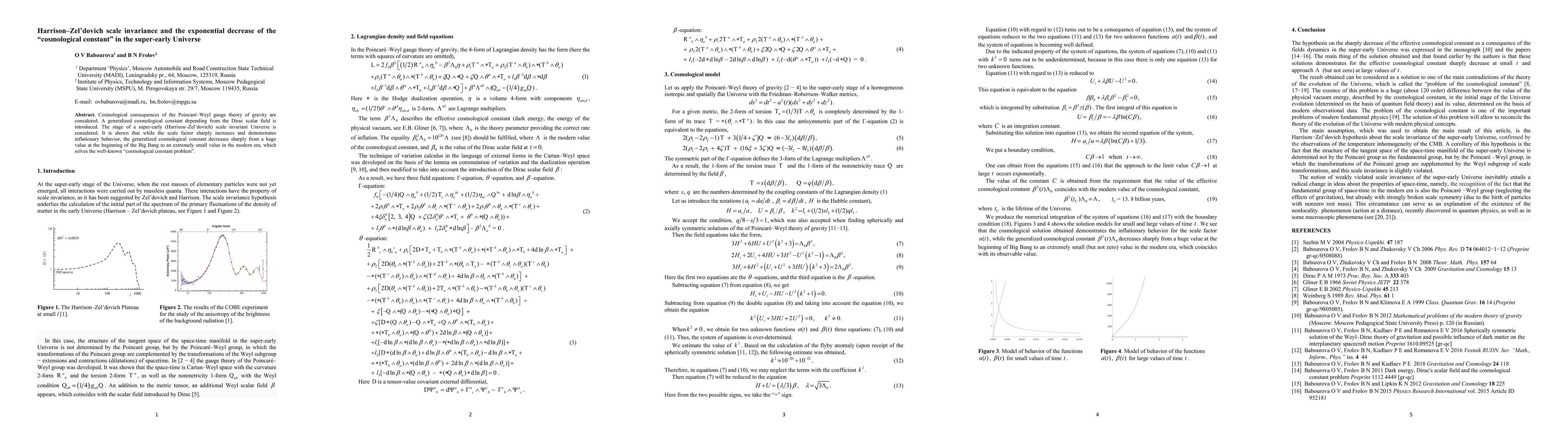 Cosmological consequences of the Poincare-Weyl gauge theory of gravity are considered. A generalized cosmological constant depending from the Dirac scalar field is introduced. The stage of a super-early (Harrison-Zel'dovich) scale invariant Universe is considered. It is shown that while the scale factor sharply increases and demonstrates inflationary behavior, the generalized cosmological constant decreases sharply from a huge value at the beginning of the Big Bang to an extremely small value in the modern era, which solves the well-known "cosmological constant problem".