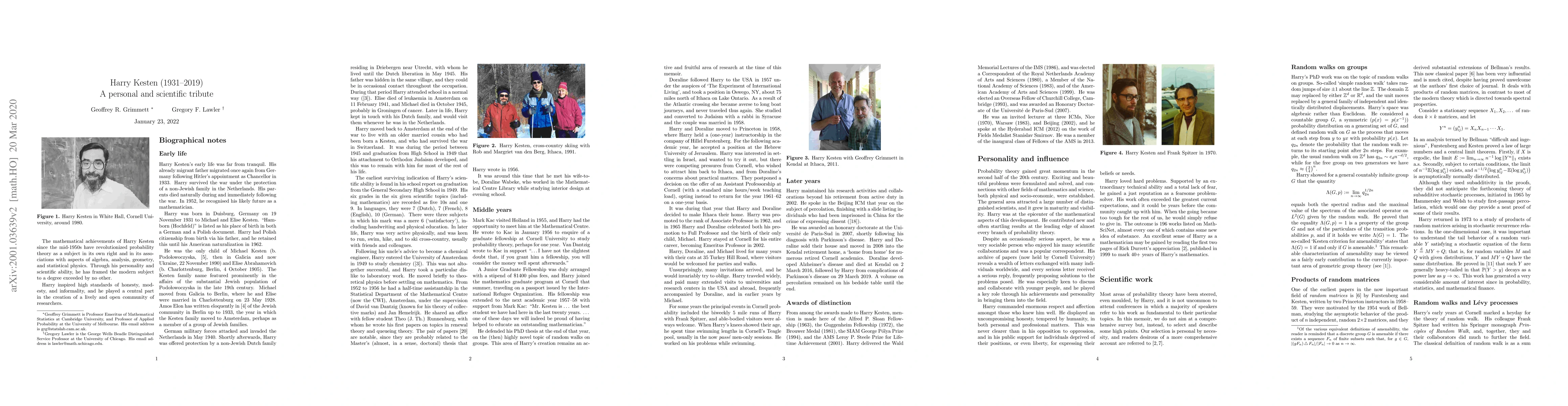 The mathematical achievements of Harry Kesten since the mid-1950s have revolutionized probability theory as a subject in its own right and in its associations with aspects of algebra, analysis, geometry, and statistical physics. Through his personality and scientific ability, he has framed the modern subject to a degree exceeded by no other. The impact of his work and personality is summarised in this memoir.