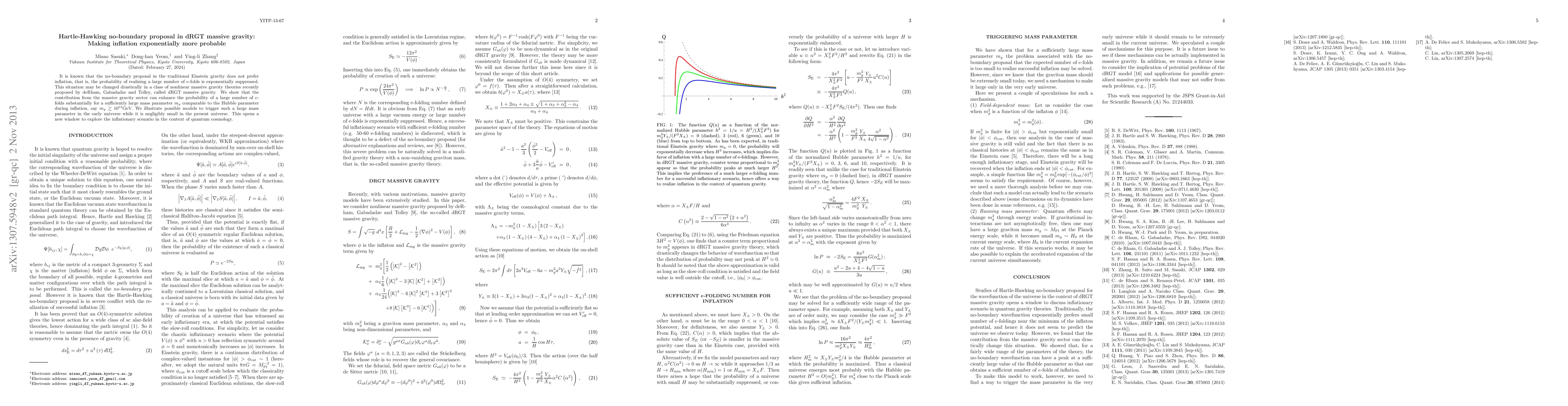 The research applies the Hartle-Hawking no-boundary proposal to dRGT massive gravity, analyzing the effect on the probability of inflationary scenarios.